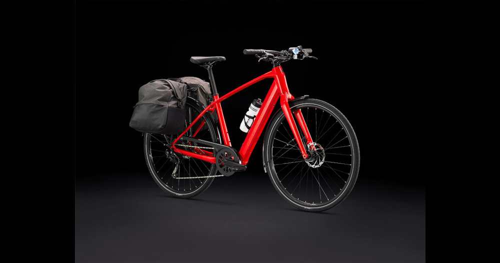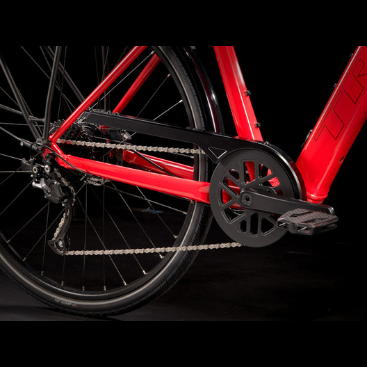 Un cadre et une fourche légers en aluminium, le système d’assistance au pédalage exclusif de Trek doté d’un moteur-moyeu (250 W, 40 Nm) offrant une assistance allant jusqu’à 25 km/h et une batterie de 250 Wh pour une autonomie sur une distance allant jusqu’à 56 kilomètres par charge. Il est également doté de roues rapides 700c, de pneus rapides et stables 40c à flancs réfléchissants, d’une transmission Shimano fiable à 9 vitesses, de freins à disque hydrauliques, d’éclairages intégrés alimentés par la batterie, d’un porte-bagages arrière compatible MIK, de garde-boue et d'une béquille.