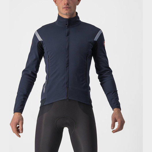- Exklusiver wasserdichter GORE-TEX INFINIUM™ WINDSTOPPER® 205 Warm (innen aufgebürstet) Stoff von Castelli vorne.