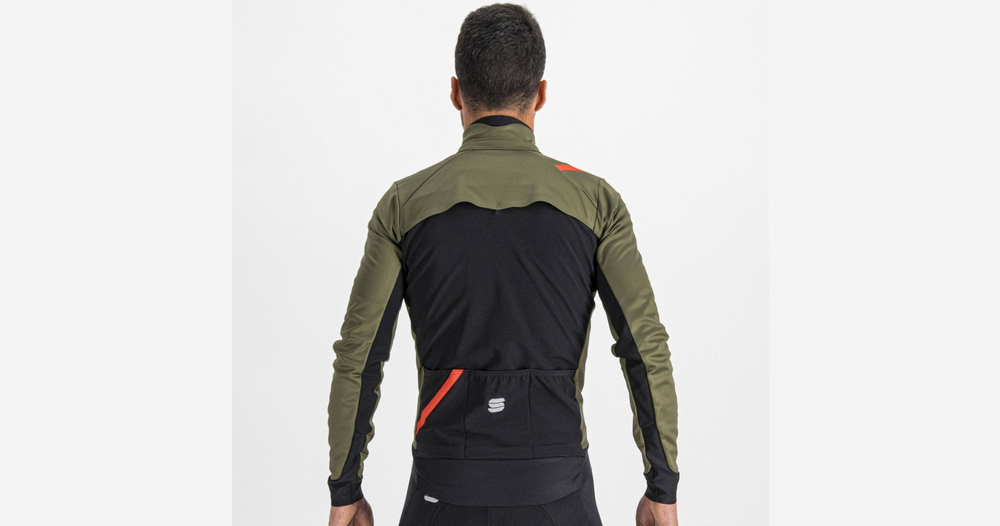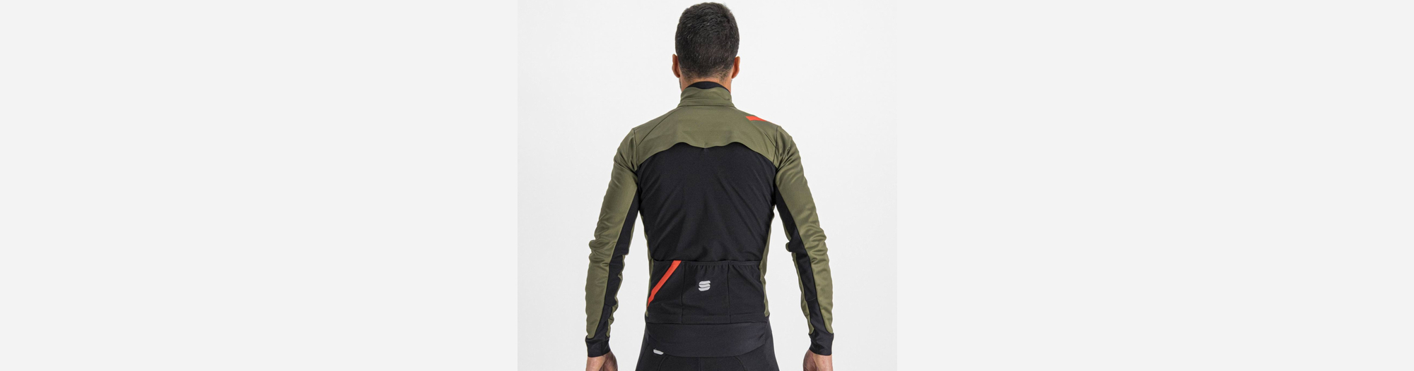 - Gewebe mit wasserabweisender Behandlung am äußeren Kragen, an den Ärmelbündchen und am unteren Rückenbereich