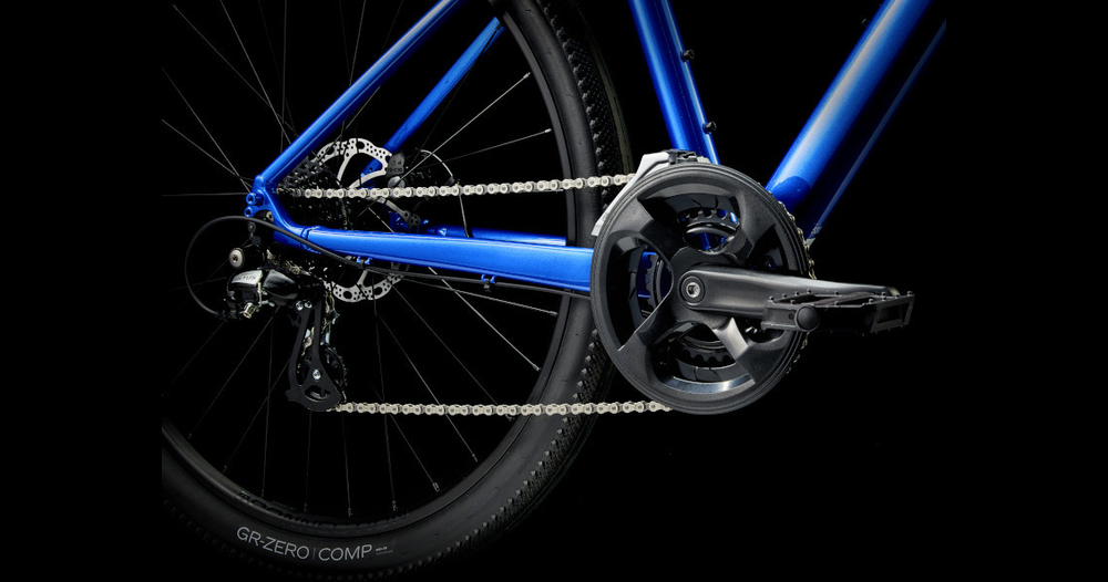 Ein leichter Aluminiumrahmen mit interner Kabelführung, Befestigungen für Gepäckträger und Schutzbleche, breite 650b-Räder und 50c-breite Reifen für mehr Leistung und Komfort auf verschiedenen Geländetypen, eine Shimano 2x8-Schaltung mit einem breiten Übersetzungsbereich, ergonomische komfortable Griffe sowie kraftvolle mechanische Scheibenbremsen für zuverlässiges Bremsen bei jedem Wetter.
