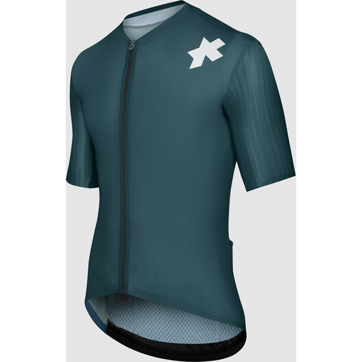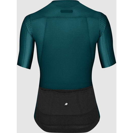 Das offene 3D-MiniCheck Tex-Strickmaterial bietet eine hohe Atmungsaktivität, große Elastizität, UPF 25 und die Textur des Trikots ASSOS auf der Vorderseite. Die Taschen sind durch ein Rückenpanel aus Stabilizer V11 gesichert, das eine übermäßig kühlende Atmungsaktivität bietet und so leicht (UPF 15) ist, dass wir empfehlen, Sonnencreme darunter aufzutragen. Es verstärkt auch die Stabilität, verhindert ein Absacken und Bewegungen, wenn die Taschen beladen sind. Die Ärmel bestehen aus dem neuen 550CX warp-knit Material, das eine hervorragende Atmungsaktivität bietet und so leicht (UPF 15) ist, dass wir empfehlen, darunter Sonnencreme aufzutragen.