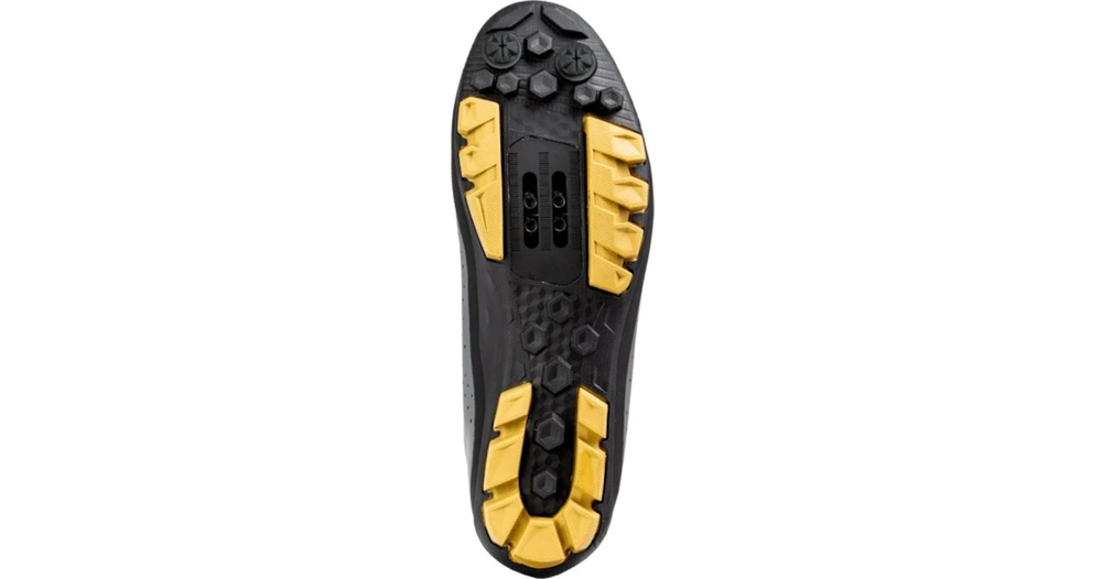 Die Sohle kombiniert Cross-Country-Leistung und die notwendige Traktion, um sicher auf jedem Gelände zu laufen. Sie verfügt über ein fortschrittliches Flexibilitätssystem und eine Fußgewölbestütze, um die Kraft auf die Pedalauflagefläche zu übertragen und außergewöhnlichen Komfort beim Gehen zu gewährleisten. Die Gummiaußensohle bietet hervorragenden Grip bei jedem Wetter und auf jeder Oberfläche.