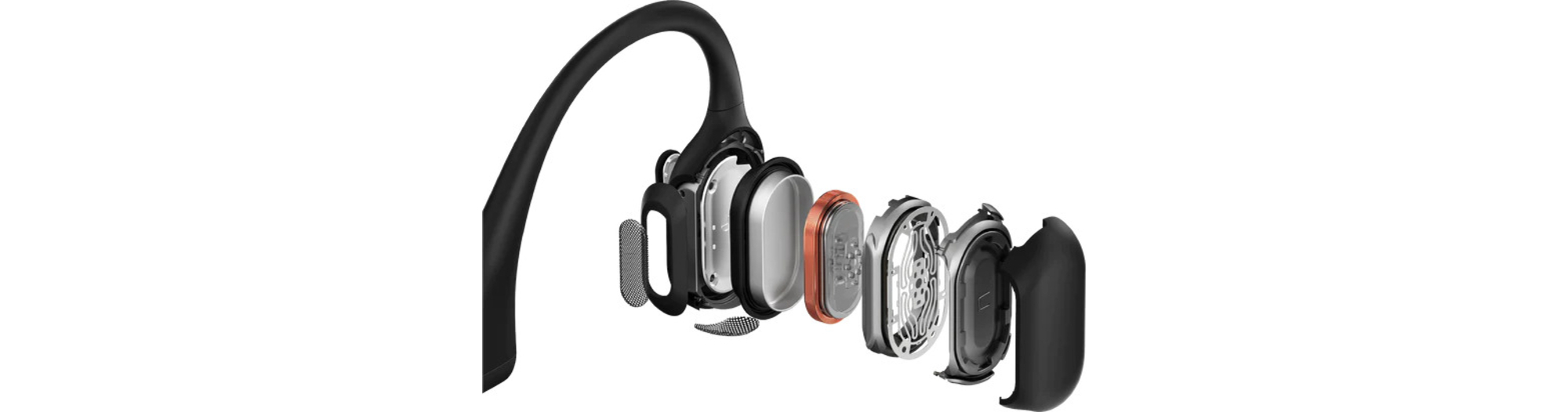 - Der OpenRun Pro verfügt über eine erweiterte Tastenform für einfachere Bedienung und einen neuen Ladeanschluss für einen einfacheren Zugang zum Laden.