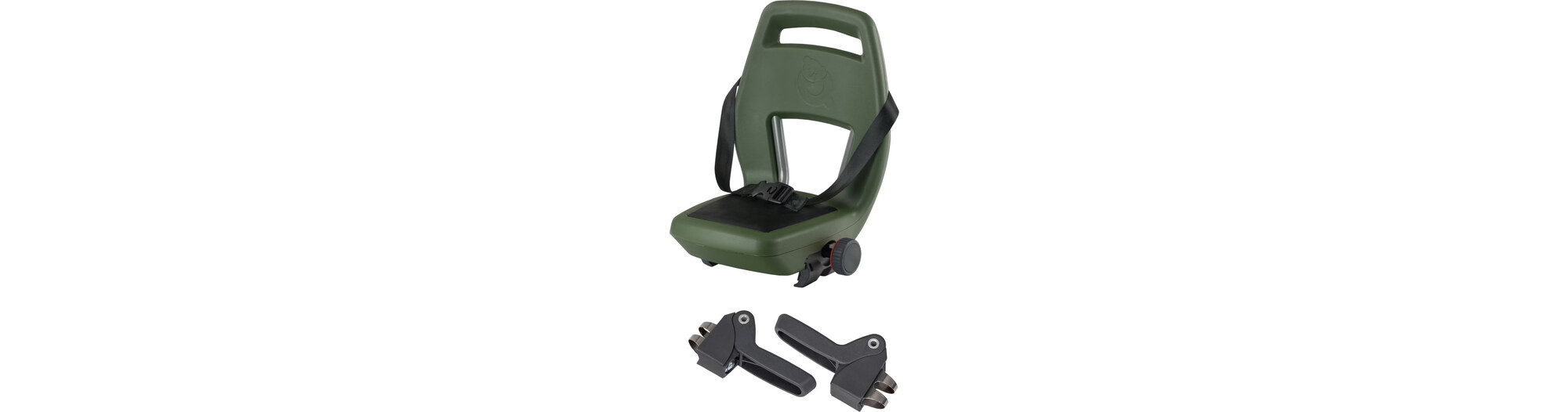 Größere Kinder ab etwa 6 Jahren können ihre Füße nicht mehr bequem auf die Sicherheitsfußstützen der Rücksitze stellen. Sie müssen dann die Beine stark anwinkeln und behindern den Fahrer oder die Fahrerin. Der Kindersitz Quibbel verfügt über eine breite Sitzfläche und eine hohe Rückenlehne mit Sicherheitsgurt. Die separaten Fußstützen können tief an den Sattelstreben montiert werden. Speichenschutzscheiben werden mitgeliefert und hinter den Fußstützen montiert. Für zusätzliche Sicherheit wird empfohlen, die mitgelieferten Fußschützer zu montieren.