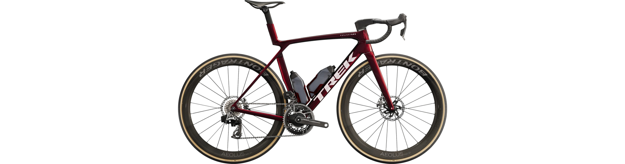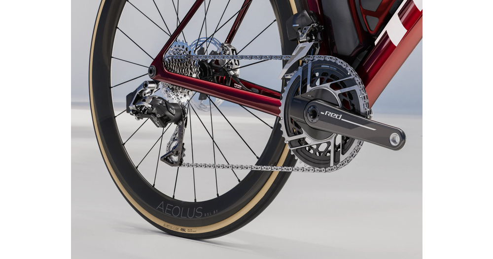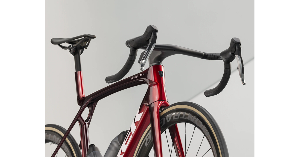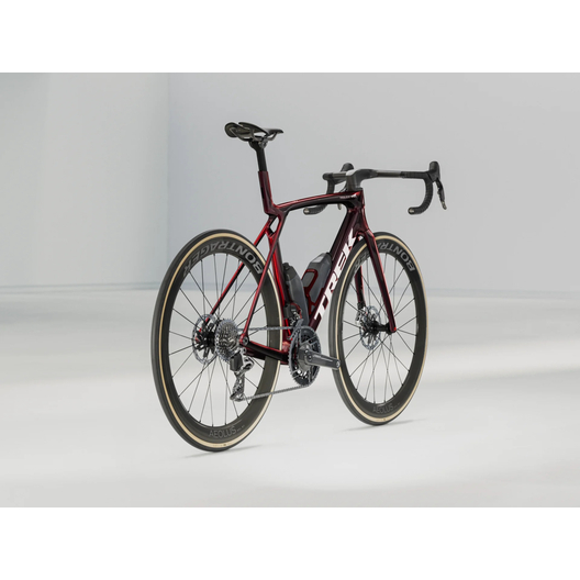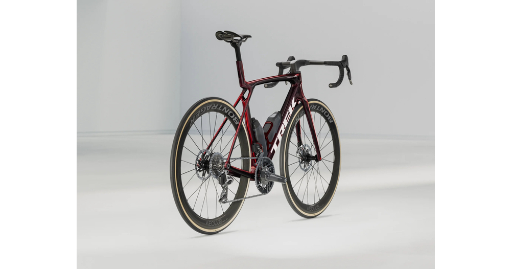 Ein unglaublich leichter Rahmen, hergestellt aus 900er OCLV Carbon, unserem hochwertigsten Carbon, mit aerodynamischen Rohren und IsoFlow Technologie, und ausgestattet mit RSL Aero Flaschen und Flaschenhaltern, um Watt zu sparen. Die neueste ultraleichte SRAM RED AXS E1 Gruppe und ihr Leistungssensor, um Ihre Trainingsdaten zu sammeln. Ein universeller Schaltauge, damit Sie es überall ersetzen können. Darüber hinaus ist es mit den Bontrager Aeolus RSL 51 Carbon Tubeless Rädern und dem Trek Aero RSL Lenker/Vorbau-Set ausgestattet.