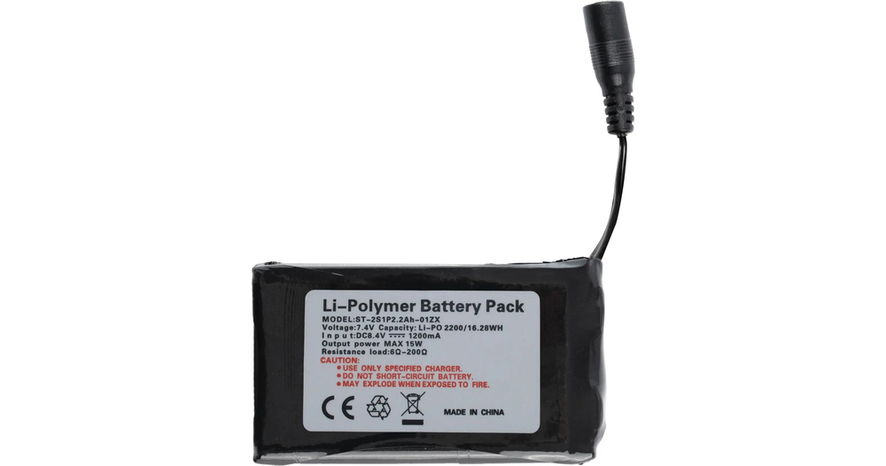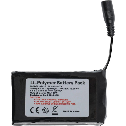 - Betrieb mit im Lieferumfang enthaltenem und wiederaufladbarem Lithium-Akku mit 7,4 V/2200 mAh (ca. 4 Stunden bei 65,5°C)