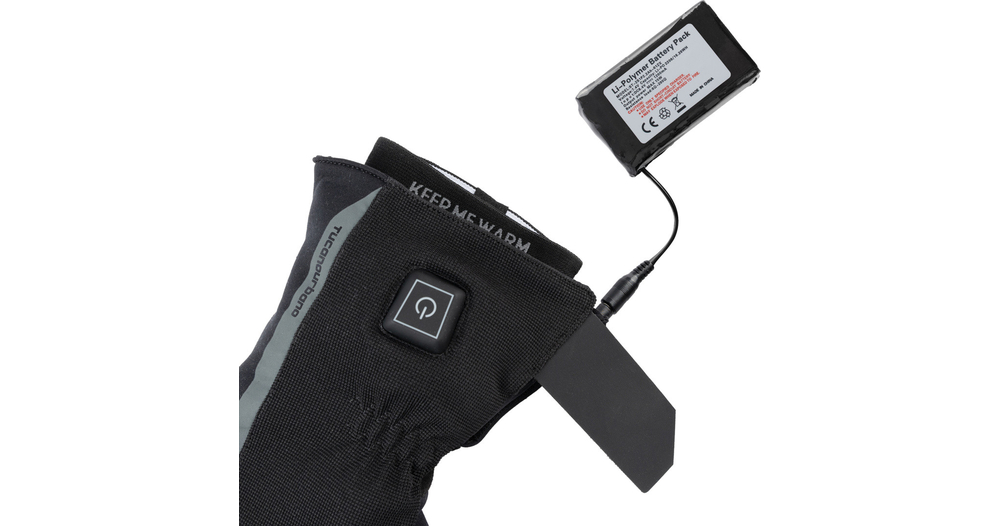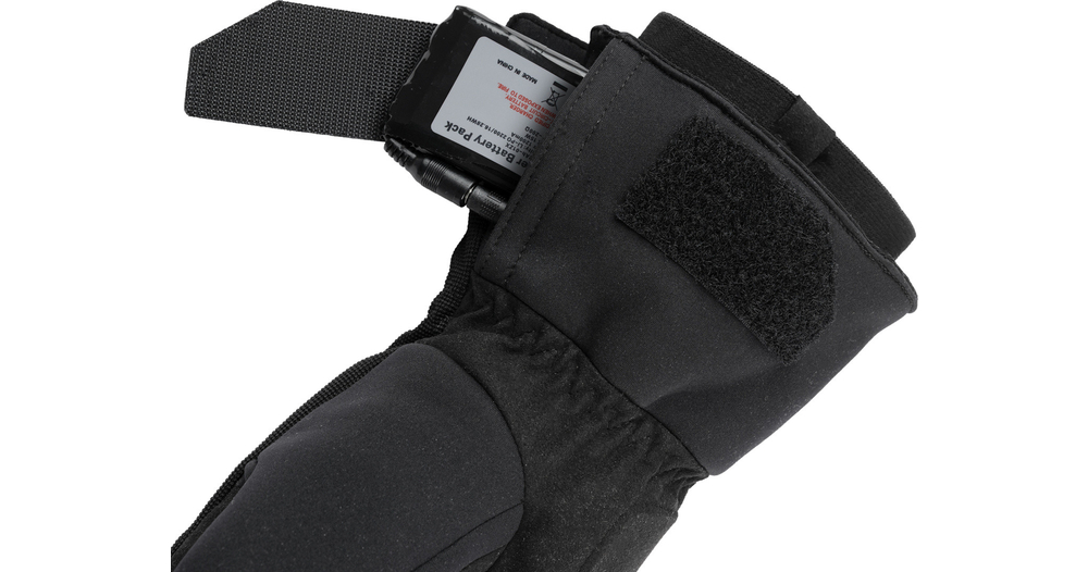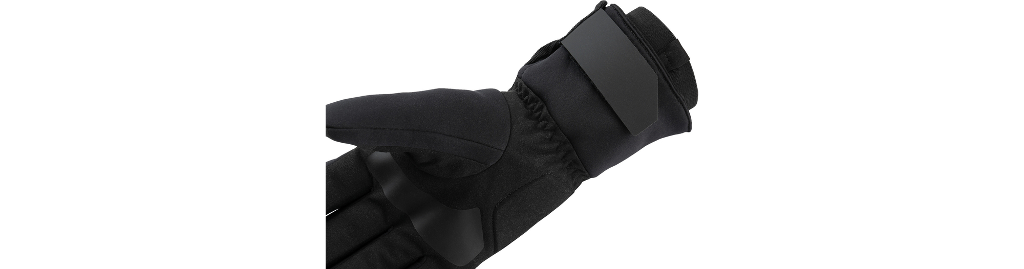 - Lasche mit Klettverschluss am Handgelenk zur thermischen Isolation des Handschuhs und zum Schutz der Akku-Tasche