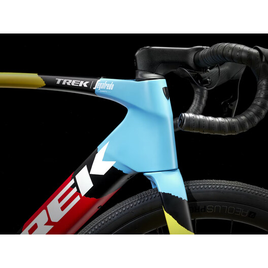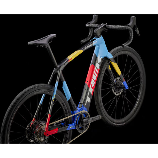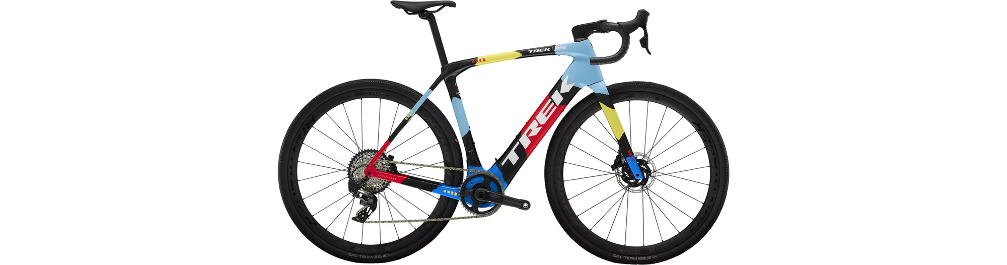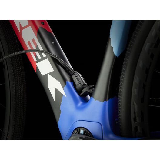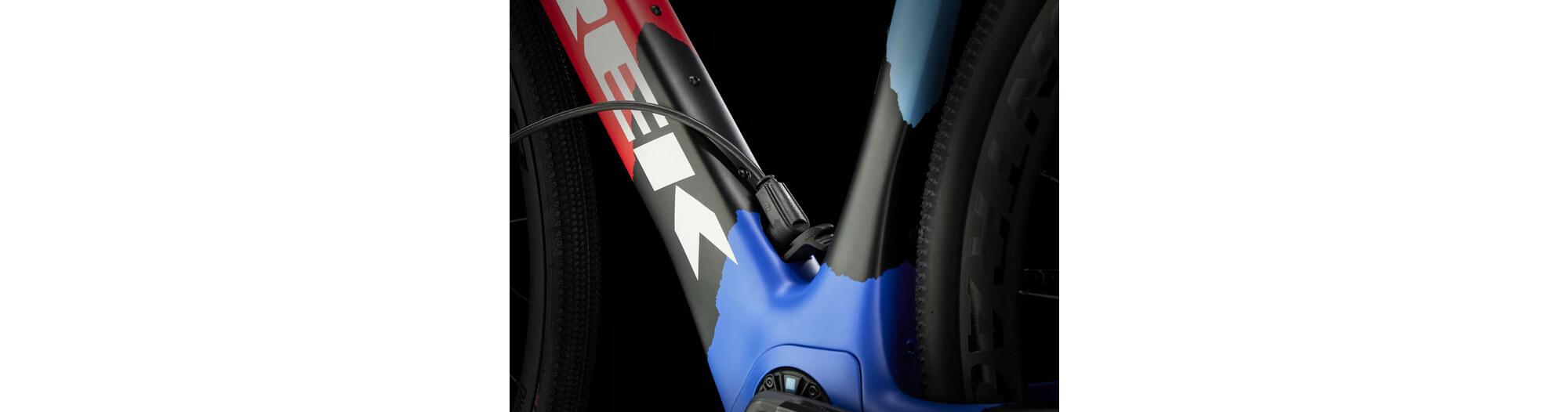 Unser Rahmen aus Carbon OCLV Serie 800, der hochwertigste und leichteste, mit IsoSpeed-Technologie hinten. Ein leistungsstarker TQ Motor mit harmonischer Ring-Pin-Antriebstechnologie, 50 Nm unterstützen das Treten bis zu 25 km/h, ein integrierter 360 Wh Akku, ein intelligentes LED-Display, und Assistenzmodus-Steuerungen diskret in den Hebeln integriert. Aeolus Pro 3V Carbon OCLV Räder, eine drahtlose SRAM Force XPLR AXS D2 1x12 Schaltung, Carbonkurbeln, ein vibrationsdämpfender Bontrager Pro IsoCore Lenker und ein RCS Pro Vorbau mit interner Kabelführung für ein sauberes Erscheinungsbild.