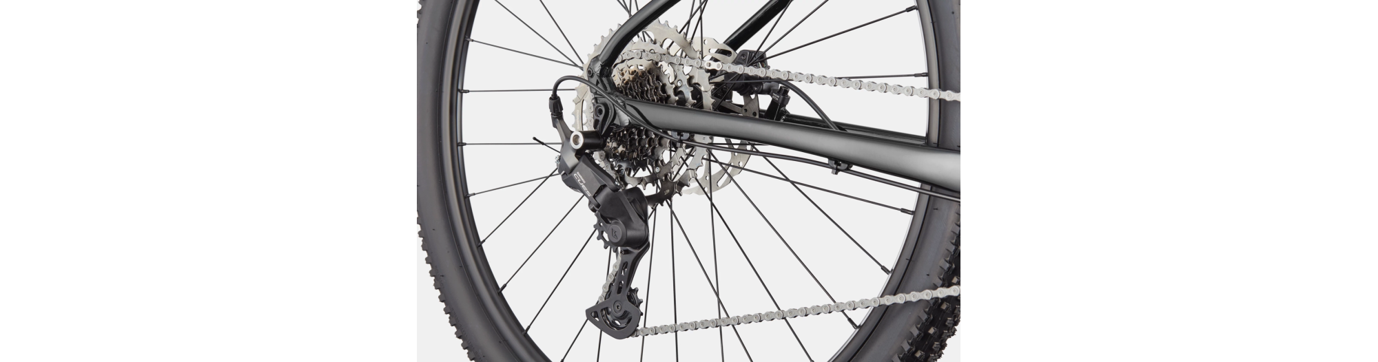 - Shimano CUES U4000 9-Gang-Gruppe: breiter Geschwindigkeitsbereich mit der Einfachheit eines Einfach-Kettenblatts