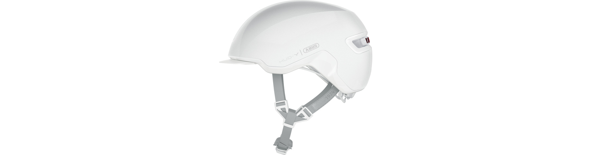 Der HUD-Y Puristic Helm von ABUS ist ein urbanes Modell mit modernem, minimalistischem Design, das für den täglichen Gebrauch mit dem Fahrrad oder Roller konzipiert ist. Er kombiniert Komfort, Sicherheit und Stil durch eine robuste In-Mould-Konstruktion, die die Außenschale aus Polycarbonat mit dem stoßabsorbierenden EPS-Schaumstoff verbindet. Eine große magnetisch befestigte und per USB aufladbare LED-Rückleuchte verbessert die Sichtbarkeit in der Stadt durch mehrere Beleuchtungsmodi. Das Zoom Ace Urban-Verstellsystem ermöglicht eine präzise Anpassung und guten Halt, während es mit langen Haaren kompatibel ist. Der Helm verfügt außerdem über ein Visier mit mehreren Positionen, verstellbare TriVider-Riemen und herausnehmbare, waschbare Innenpolster.