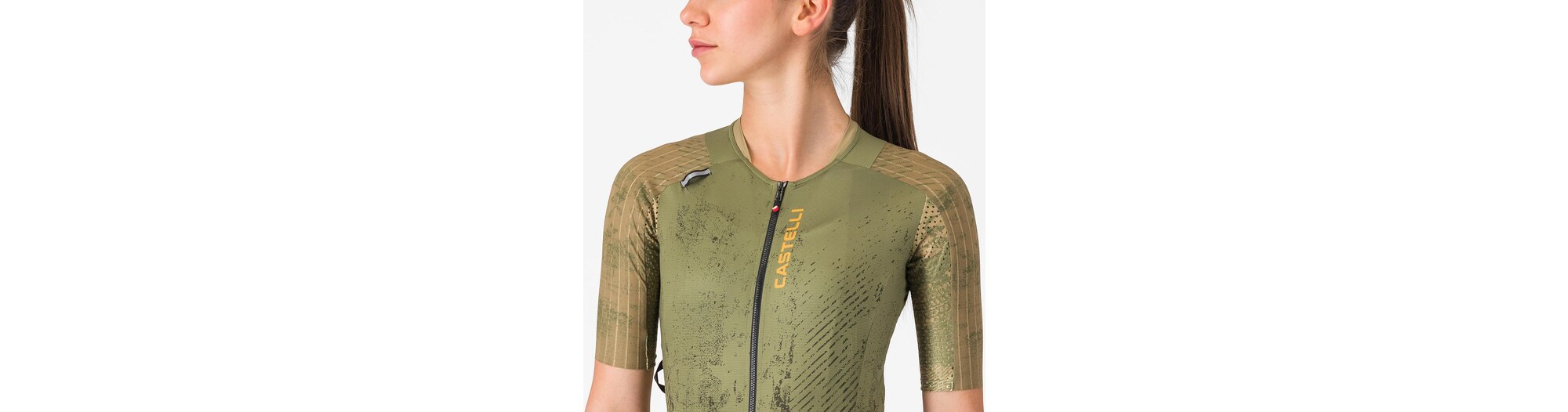 - Air_O-Stretchmaterial am Körper, von Castelli entwickelt, für maximale Atmungsaktivität, Komfort und Performance