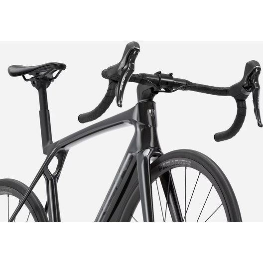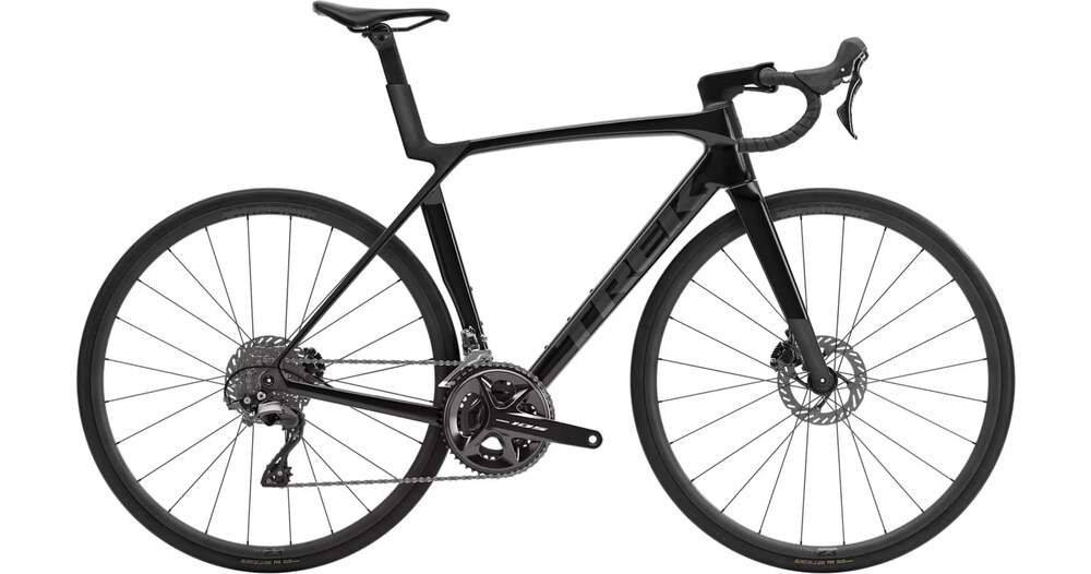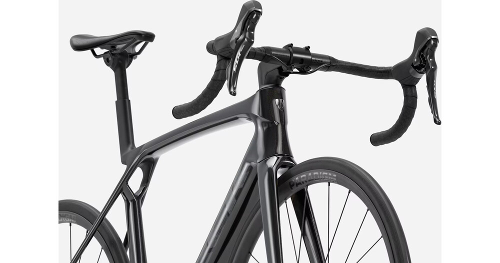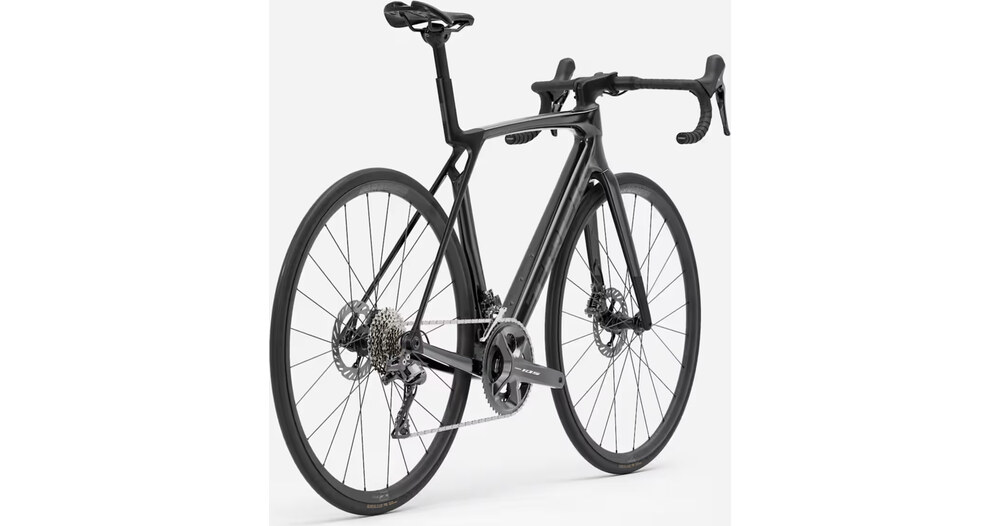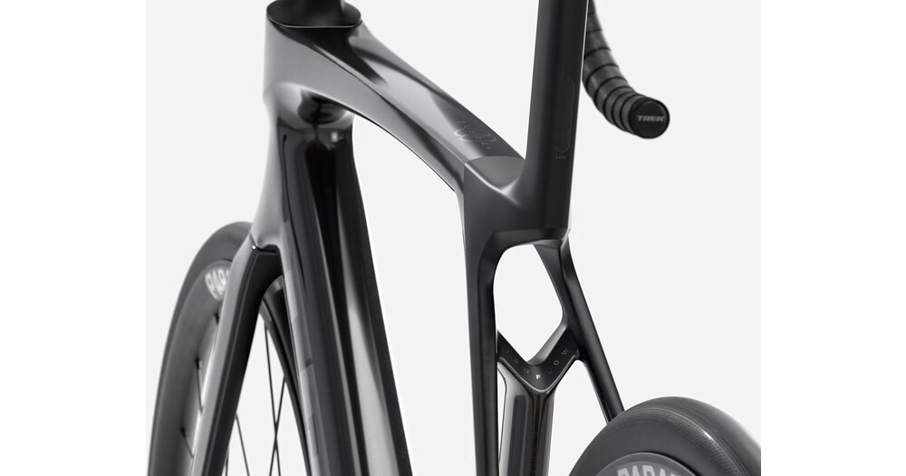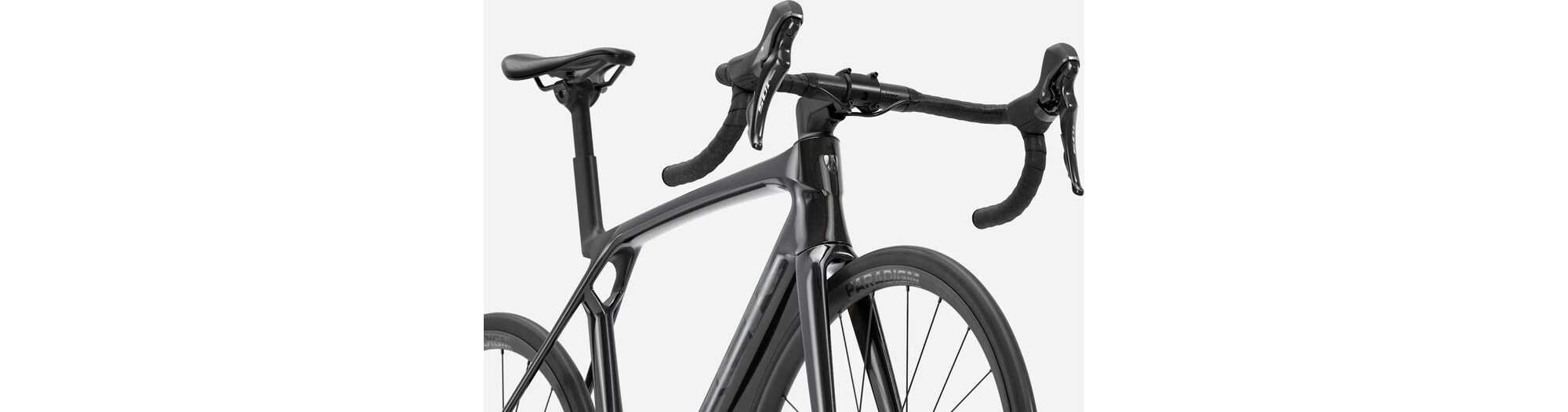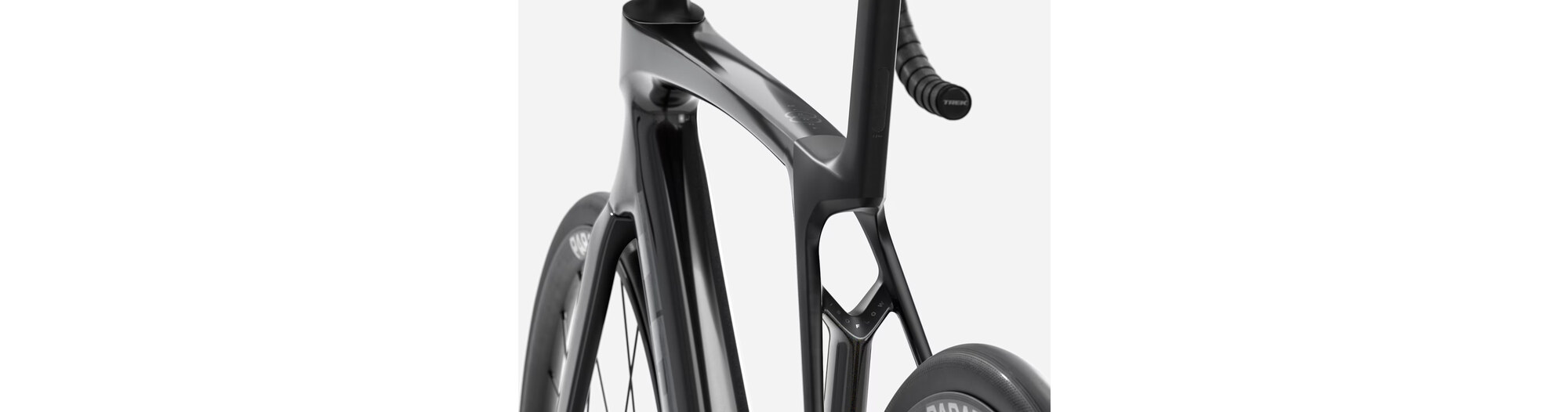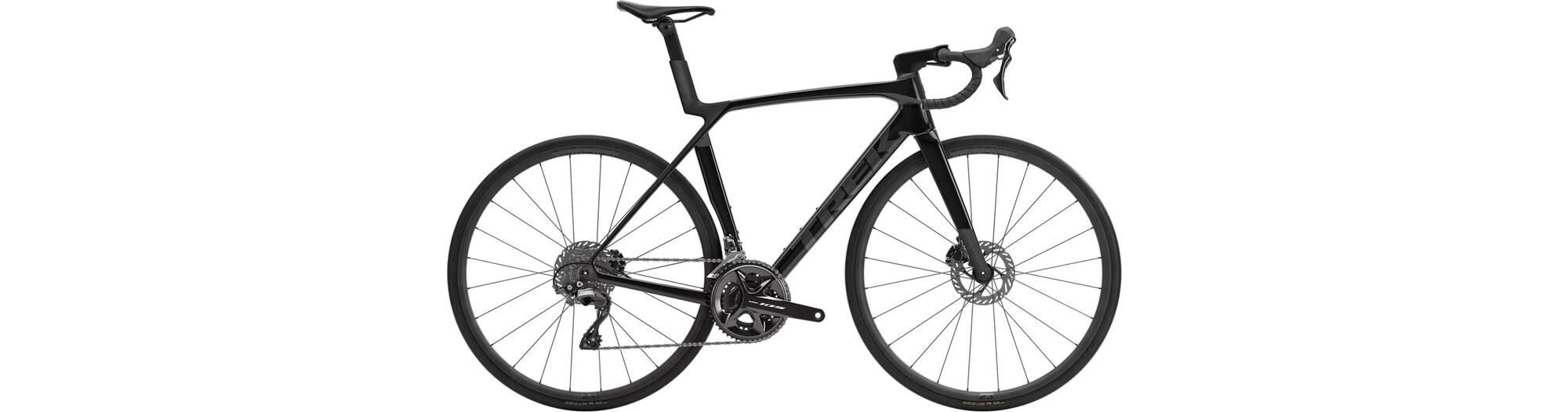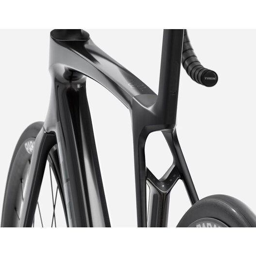 - Madone 8e gén. voll aus Carbon, konisches Steuerrohr aus Carbon, interne Kabelführung für Bremsen, Flat-Mount-Scheibenbremsen, geriffelte Steckachsen von 12x100 mm