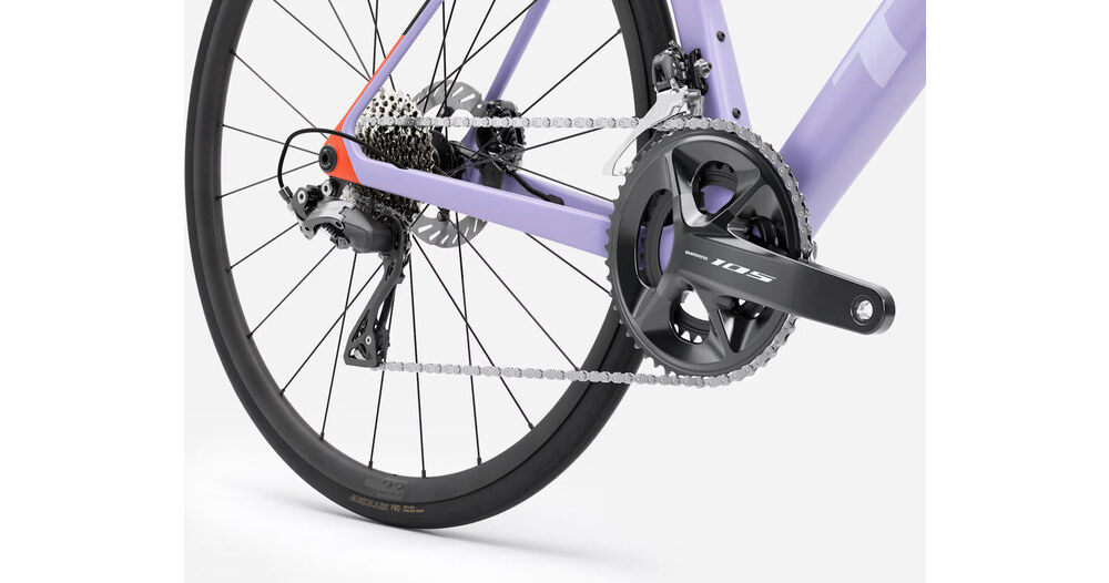 Leicht und aerodynamisch, bietet das Madone SL 5 8. Gen. einen kostengünstigen Zugang zu Wettbewerbstechnologie. Es bietet einen ähnlichen aerodynamischen Vorteil wie die teureren Madone SLR 8. Gen. Modelle, besteht jedoch aus einem wirtschaftlicheren OCLV 500 Carbon und einem zweiteiligen Cockpit mit interner Kabelführung. Die Shimano 105 Gruppe, der Lenker aus Aluminium und die Aluminiumräder halten den Preis niedrig und liefern dennoch zuverlässige und präzise mechanische Gangwechsel.