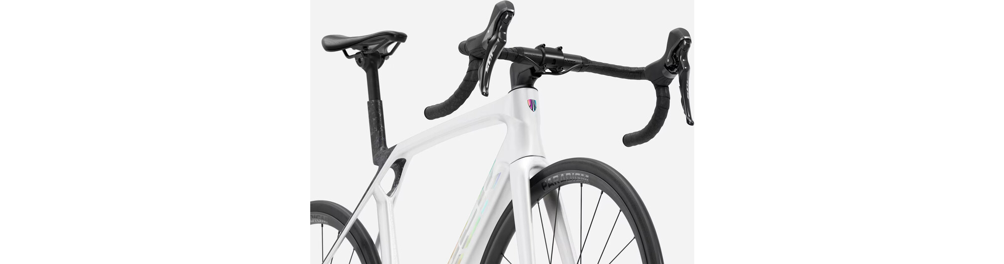 - OCLV Carbon Serie 500, Full System Foil Rohrform, IsoFlow-Sattelrohr, RCS-Steuersatz, elektronische oder mechanische Kabelführung, abnehmbarer aerodynamischer Kettenschutz, T47-Innenlager, Flat Mount Scheibenbremsen, universelle Schaltaugen (UDH), 142 x 12 mm Steckachse