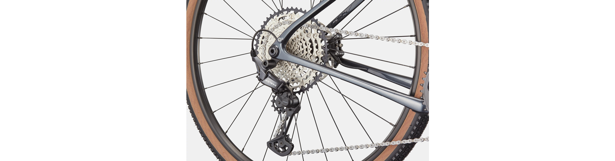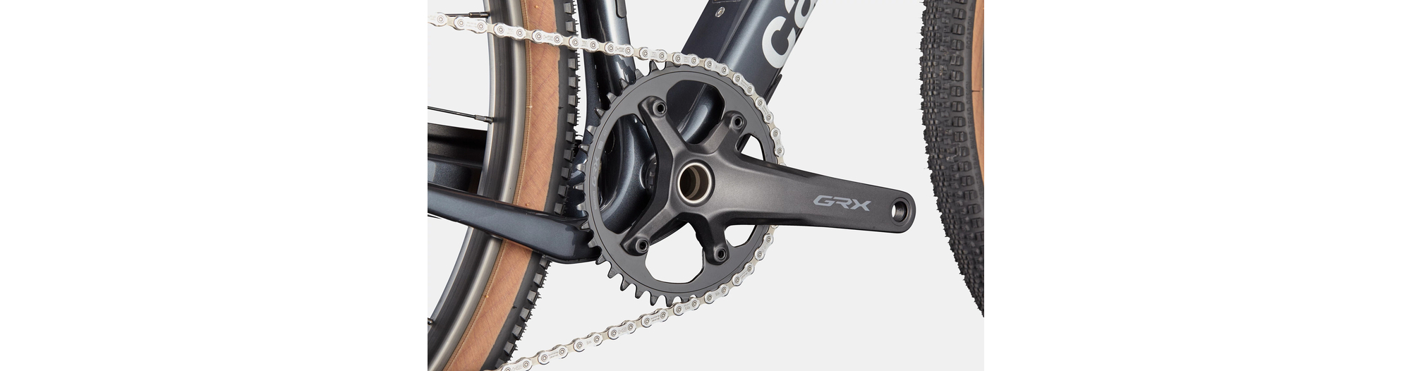 Bestehend aus einem Einfach-Kettenblatt und einer SLX-Kassette mit breitem 12-Gang-Bereich, kombiniert die hochwertigen Shimano-Gravel-Gruppen GRX820 und GRX610 für höchste Leistung.