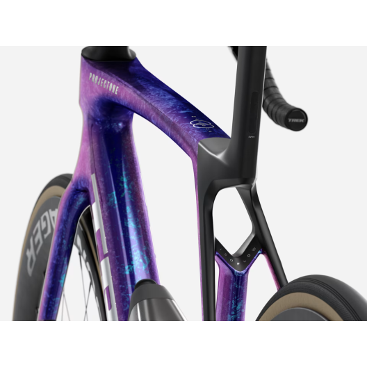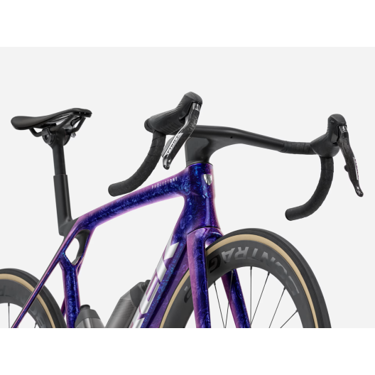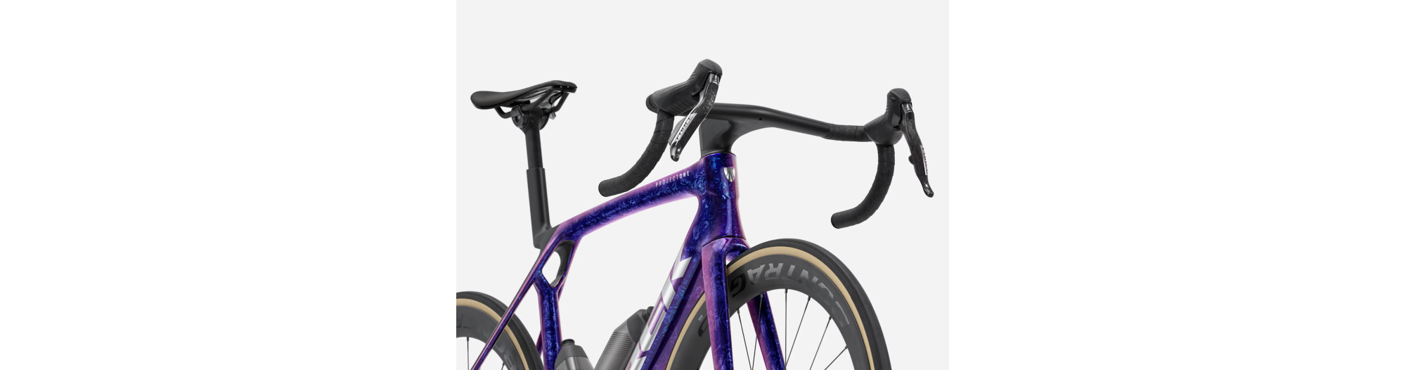 - Madone 8e gén. entièrement aus Kohlenstoff, konisches Kohlenstoffgelenk, interne Kabelführung für Bremsleitungen, Flat-Mount-Scheibenbremsen, 12x100 mm geriffelte Steckachsen