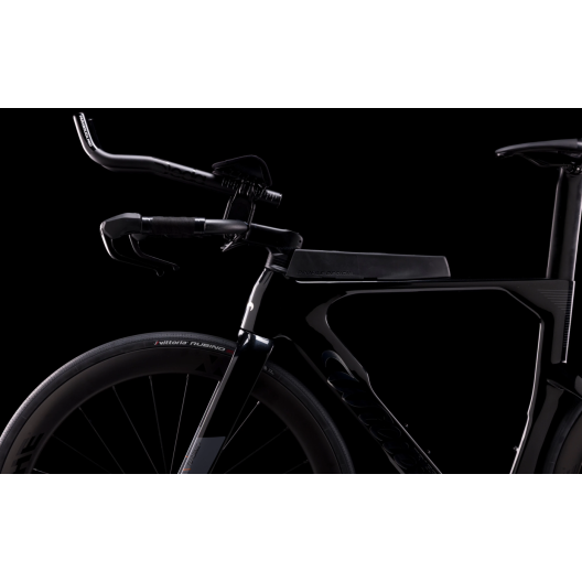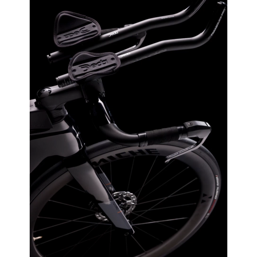 Die Rahmenstruktur ist so optimiert, dass der Luftwiderstand reduziert wird: Das großflächige Unterrohr leitet die Luftströme und schützt die Trinkflasche, während die asymmetrische Gabel, die um das Bremssystem herum entwickelt wurde, die Präzision und Flüssigkeit verbessert.