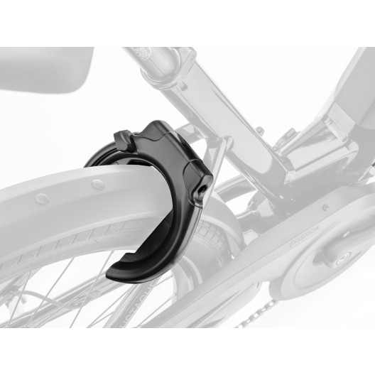 Ausgestattet mit dem integrierten Abus-Ringschloss, das es ermöglicht, Ihr Rad mit einem einfachen Dreh des Schlüssels zu blockieren und zu sichern, für einen kurzen Halt. Kompatibel mit einer "Plug-In"-Kette für mehr Sicherheit bei längeren Parkzeiten.