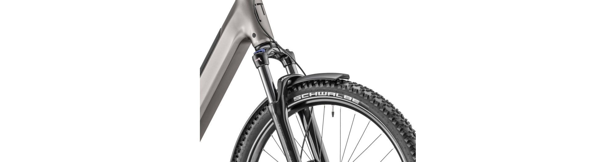 Dank seines stabilen und präzisen Rahmens, seiner 27,5"-Räder mit Schwalbe Smart Sam-Reifen, seiner Federung, die Stöße für optimalen Komfort auf allen Geländearten absorbiert, seinem Bosch Performance PX Smart System-Motor, der neuen Referenz in Sachen Leistung und Dynamik, sowie seiner kompletten und hochwertigen Ausstattung ist der Xroad 4 sowohl auf Landwegen als auch im Großstadtdschungel zu Hause.