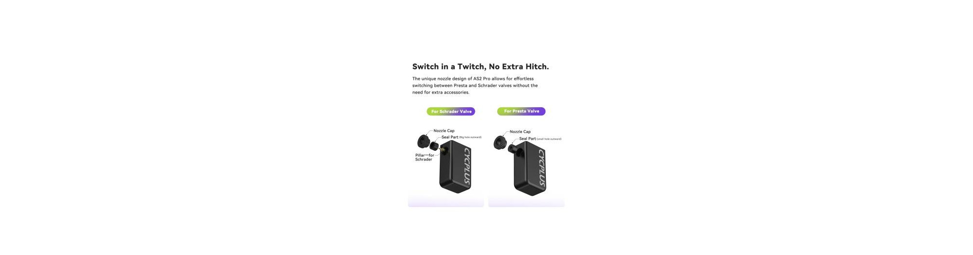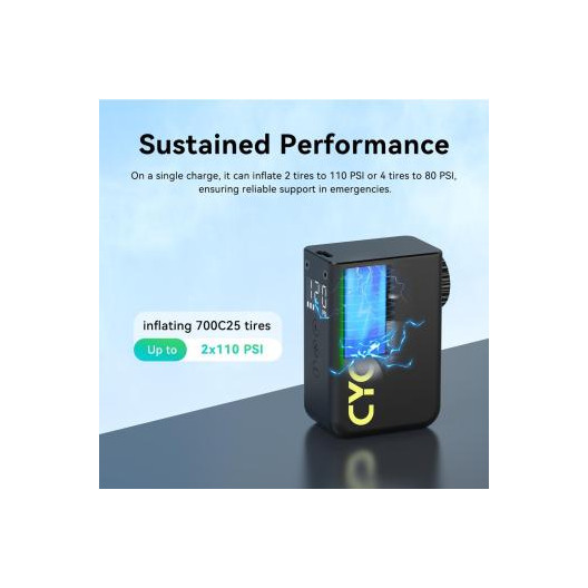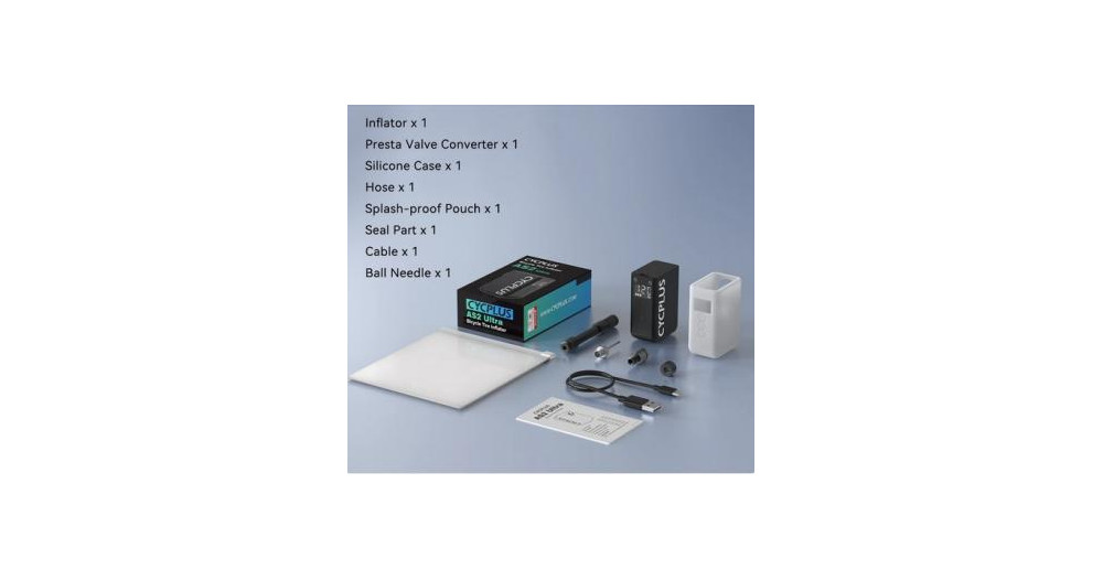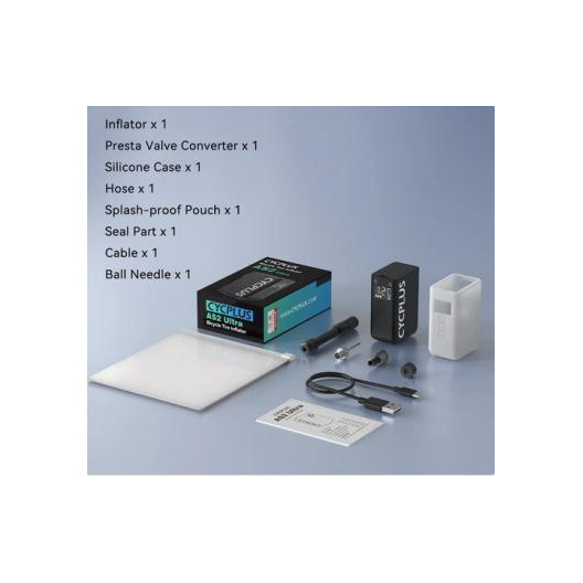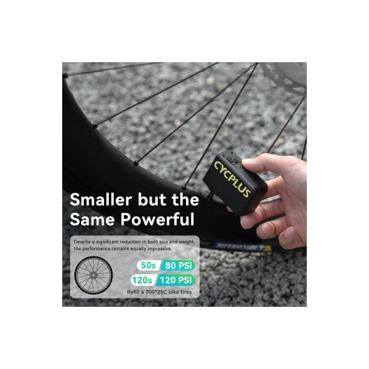 CYCPLUS AS2 Ultra - kleiner als klein. Mit Abmessungen von nur 65mm x 47.5mm x 28mm ist das Ultra nicht nur 12% kompakter als das AS2 Pro, sondern auch 33g leichter mit 87g. Kleiner, aber genauso leistungsstark. Trotz der signifikanten Reduzierung von Größe und Gewicht bleiben die Leistungen beeindruckend. CYCPLUS ist ein wahrer Pionier der elektrischen Minipumpen. Die patentierte CYCPLUS™-Designtechnologie und der ausgeklügelte bürstenlose Motor gewährleisten schnelles Pumpen und hohen Druck: 80 PSI (5,5 bar) in 50 Sekunden, 120 PSI (8,25 bar) maximaler Druck in 120 Sekunden. Das klare LED-Display zeigt den Luftdruck in Echtzeit (auf 1 PSI genau), einstellbare Einheiten und die verbleibende Batterielebensdauer an. Der integrierte 7,4V-Akku ermöglicht es beispielsweise, zweimal 700x25 Reifen auf 110 PSI (7,6 bar) oder vier- bis fünfmal auf 80 PSI (5,5 bar) aufzupumpen. Der Akku lässt sich dank des mitgelieferten USB-C-Kabels einfach und vollständig in nur 25 Minuten aufladen. Die einzigartige Ausgleichsladetechnologie erhöht die Haltbarkeit und ermöglicht mehr als 200 Ladezyklen mit weniger als 10% Batterieverlust. Nach 1 Monat im Standby-Modus ist der Akku noch mehr als halb geladen. Der AS2 Ultra passt auf Presta- und Autoventile. Für leichte Schläuche aus thermoplastischem TPU mit Harzventilen (Schwalbe Aerothan, Tubolito, Pirelli SmarTube, etc.) muss der mitgelieferte Schlauchaufsatz verwendet werden, da die Ventile durch die beim Pumpen entstehende Wärme schmelzen können. Die Silikonbeschichtung schützt vor Hitze beim Aufpumpen und die wasserdichte Hülle ist ideal für den Transport in der Trikottasche.