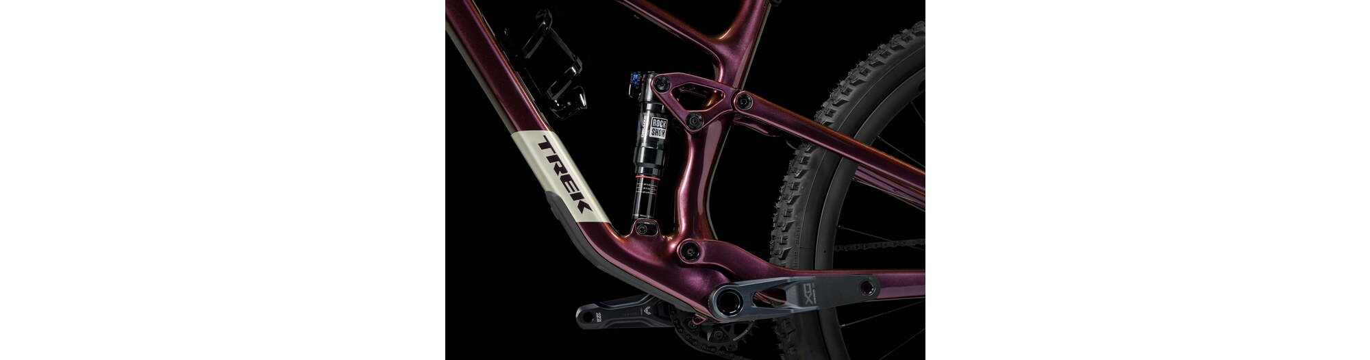 - OCLV Mountain Carbon, interner Stauraum, konisches Steuerrohr, geführte interne Kabelführung, Unterrohrschutz, Wippe aus Legierung, 4-Positionen-MinoLink, ABP, Boost148, 120 mm Federweg