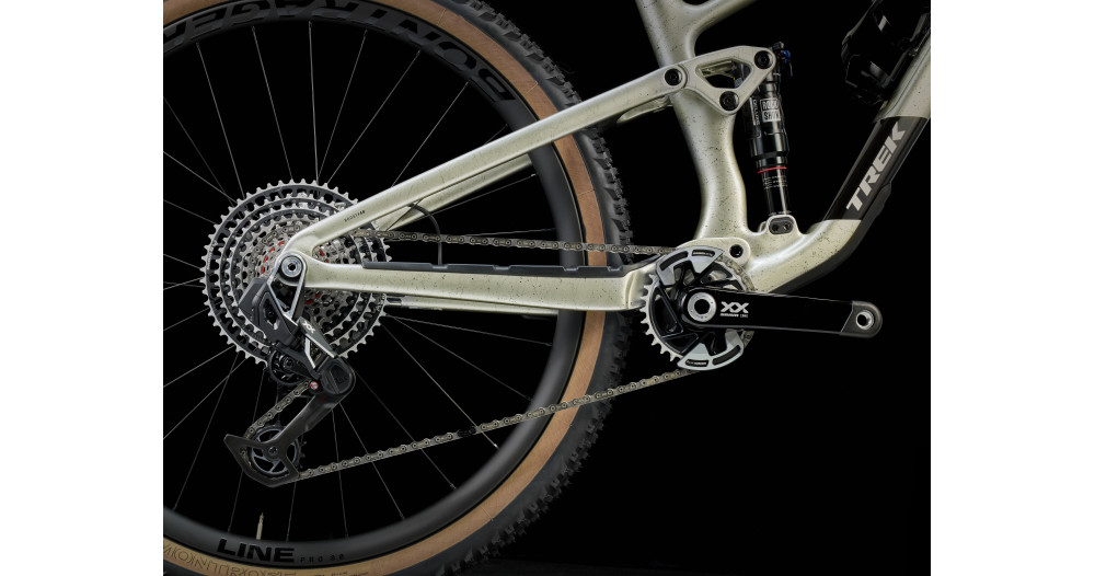 - OCLV Mountain Carbon, interner Stauraum, konisches Steuerrohr, geführte interne Kabelführung, Unterrohrschutz, Wippe aus Legierung, MinoLink mit 4 Positionen, ABP, Boost148, Federweg von 120mm