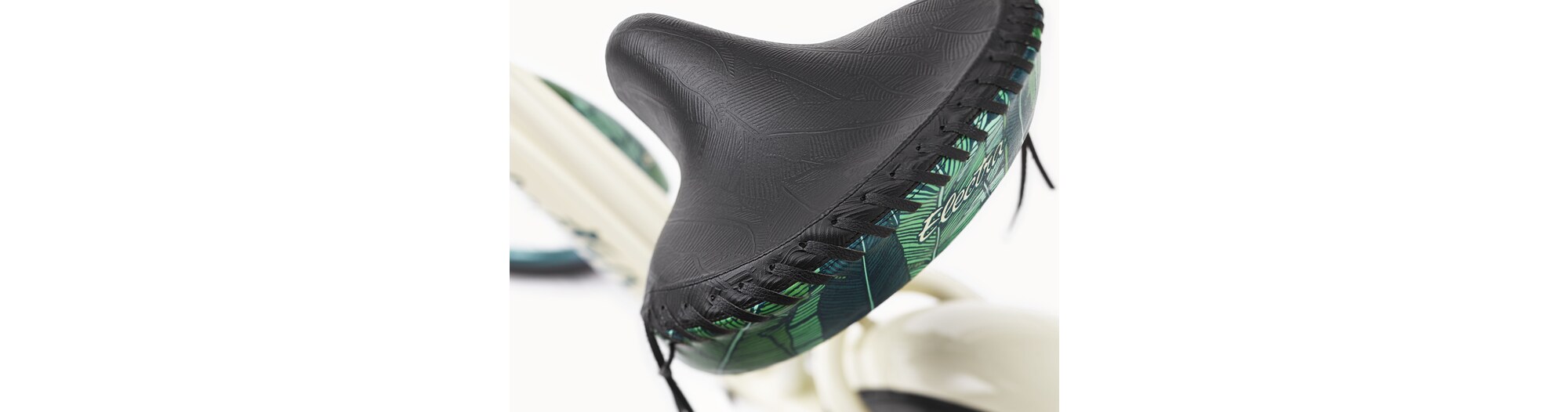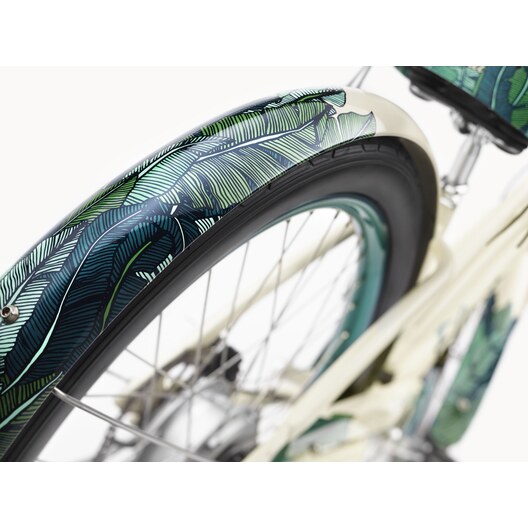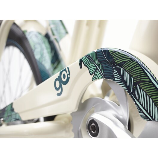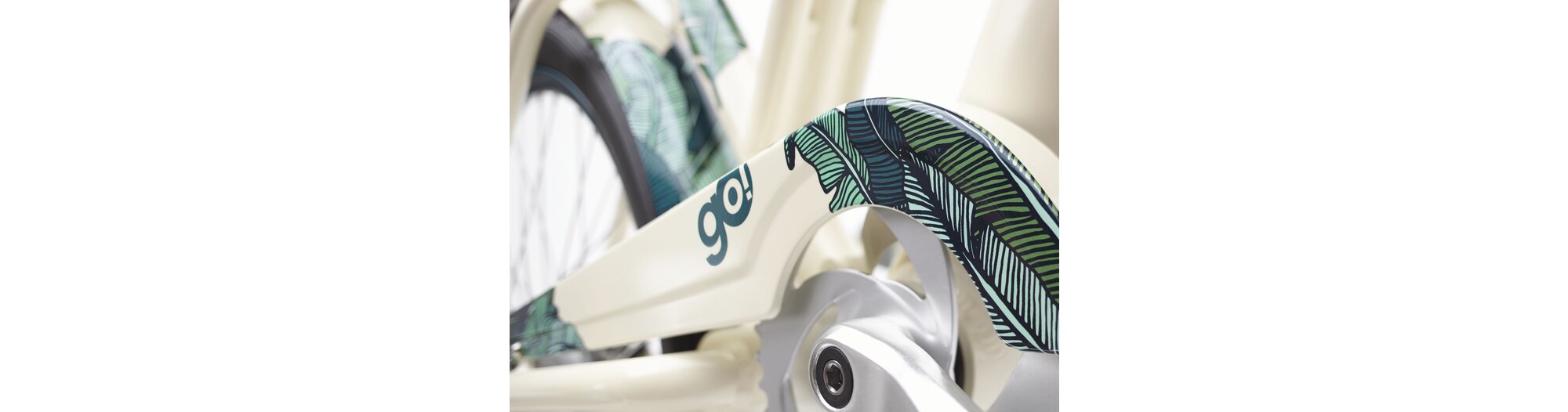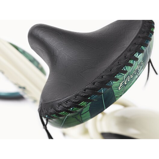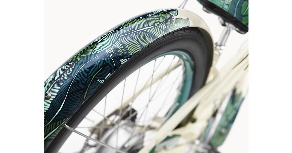 Der Shibori Go! ist inspiriert von der alten japanischen Indigo-Färbetechnik. Dieses Elektrofahrrad trägt Stoffbilder im Shibori-Stil, ähnlich wie beim Batik, bei dem der Stoff gerafft und genäht wird, um komplexe Muster zu erzeugen. Diese Patchwork-Elemente finden sich auf den Schutzblechen, dem Rahmen und dem Kettenschutz sowie auf der individuellen Klingel. All dies wird durch einen Farbverlauf von Weiß zu Indigo auf dem Rahmen hervorgehoben, der dieses Fahrrad zu einem absolut hinreißenden Sammlerstück macht.