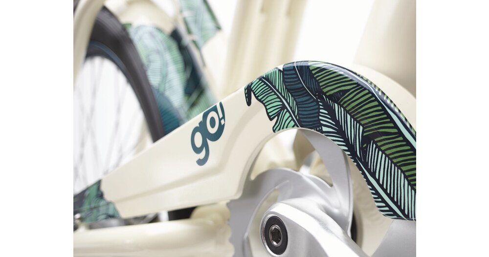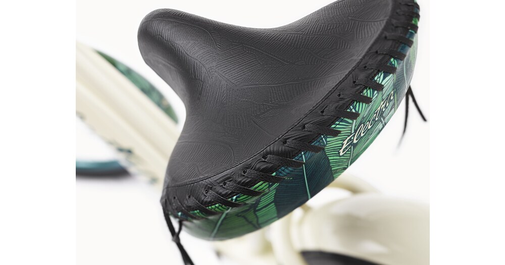 Der Shibori Go! ist inspiriert von der alten japanischen Indigo-Färbetechnik. Dieses Elektrofahrrad trägt Stoffbilder im Shibori-Stil, ähnlich wie beim Batik, bei dem der Stoff gerafft und genäht…