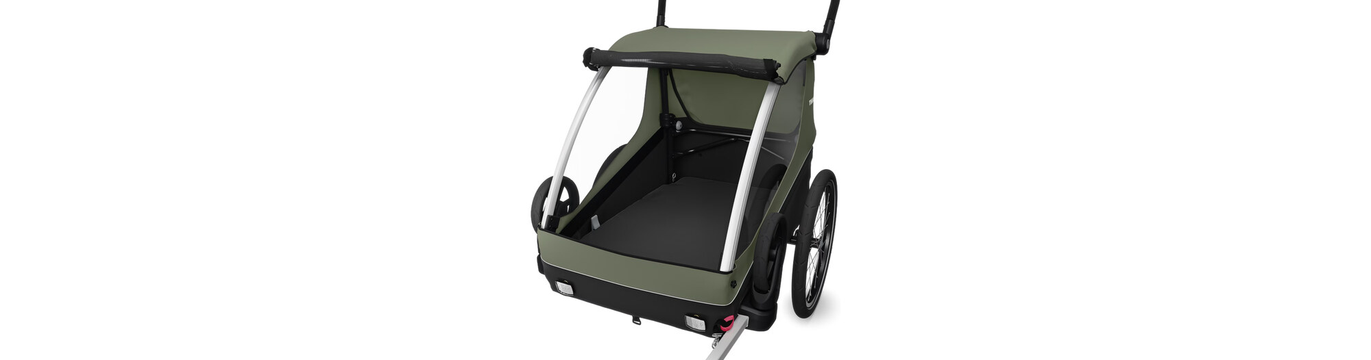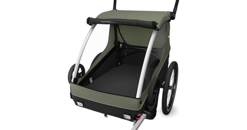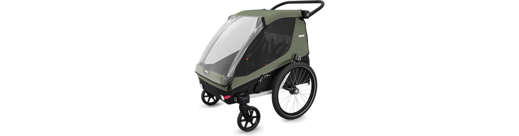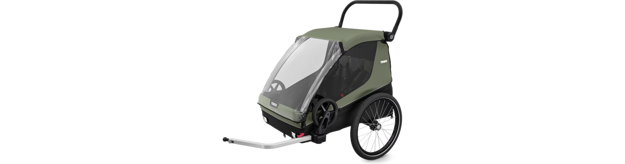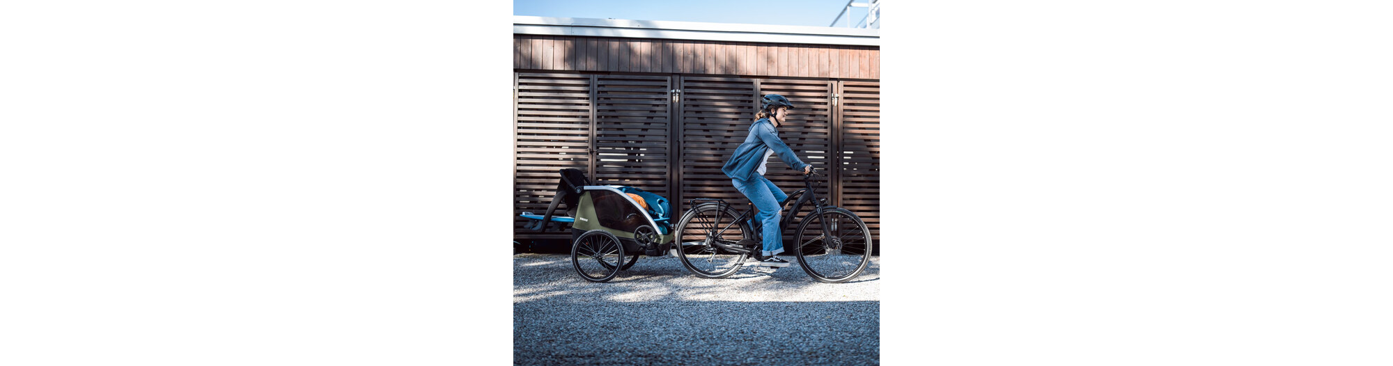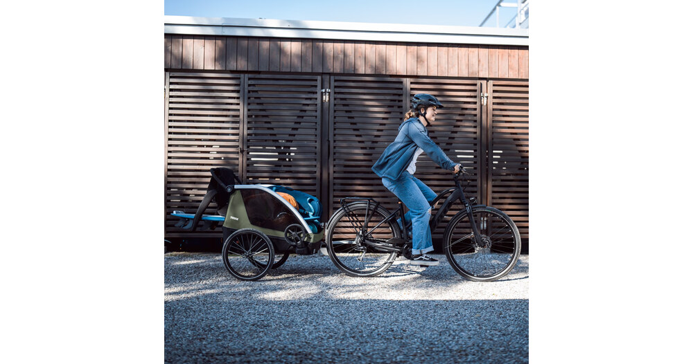 Ein ausgezeichneter Fahrradanhänger und ein ausgezeichneter Kinderwagen. Keine Kompromisse dabei. Thule Courier enthält 2 Kinderwagenräder und ein hochwertiges Thule-Anhängerset, um den Pendelverkehr zu erleichtern.