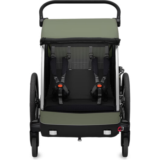 Thule Courier ist ein vielseitiger Fahrradanhänger, der sich an alle Familien anpasst. Dieser robuste Anhänger ist perfekt für lange Familientouren oder schnelle Stadtausflüge mit seinem geräumigen Innenraum für 2 Kinder. Er ist ideal für den täglichen Pendelverkehr oder um die Kinder zur Schule zu bringen und verwandelt sich nach der Ankunft leicht in einen kompakten Kinderwagen mit vollständig verstellbarem Lenker für die Eltern. Dieser bequeme Kinderfahrradanhänger kann auch in einen Lastenanhänger und mehr umgewandelt werden.
