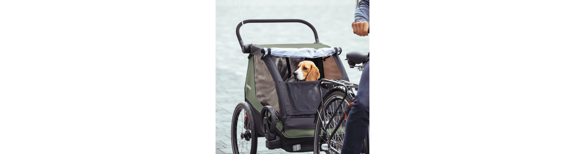 Möchten Sie Ihren Welpen mit auf einen Ausflug nehmen? Das ist möglich! Das optionale Dog Trailer Kit Zubehör (separat erhältlich) verwandelt Thule Courier in einen geeigneten Anhänger. Mit seinem weichen Hundebett und dem Dachbezug mit wasserdichter Abdeckung kann Ihr bester Freund Sie auf all Ihren Outdoor-Abenteuern begleiten.