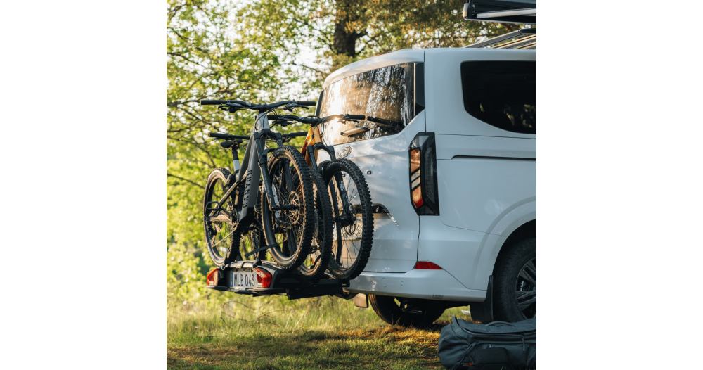 Der Thule VeloSpace 3 unterstützt Radstände bis zu 1350 mm und Einzelgewichte von Fahrrädern bis zu 30 kg. Die robuste Plattform und die durchdachte Konstruktion halten die Fahrräder auf der Straße stabil. Die 3-Fahrrad-Version bietet eine intelligente Neigefunktion, die einen einfachen Zugang zum Kofferraum ermöglicht. Der Neigungswinkel kann von 50 bis 65° geändert werden, um Zugang zum hinteren Bereich von kompakten Transportern zu erhalten.