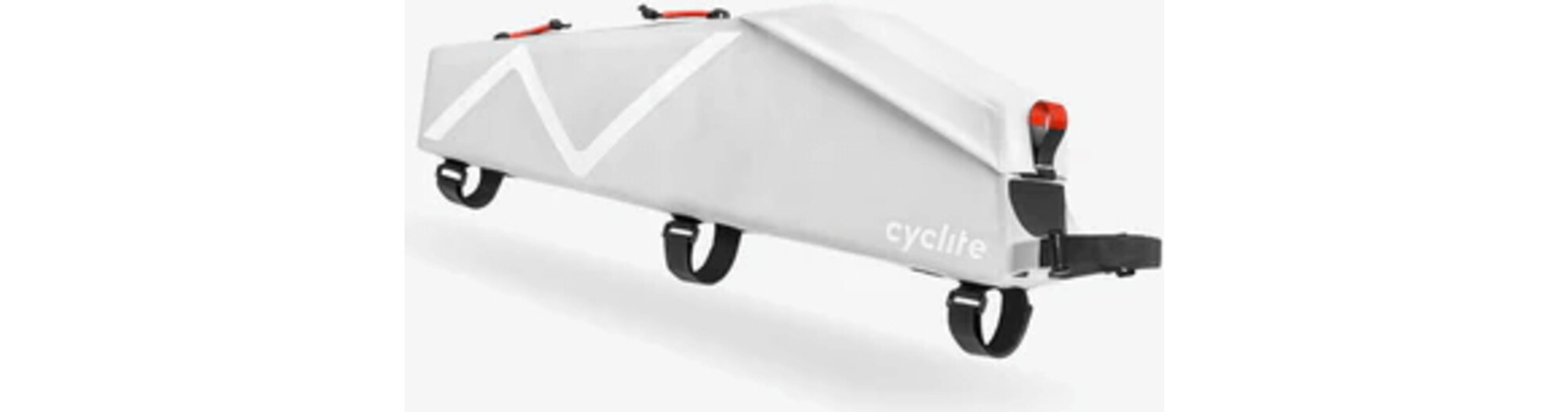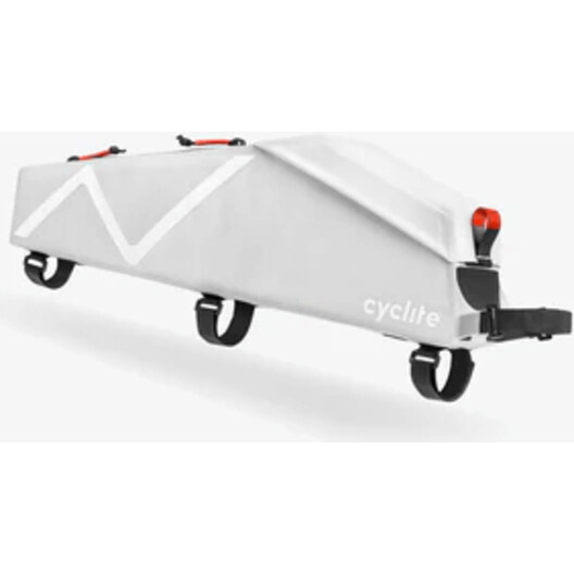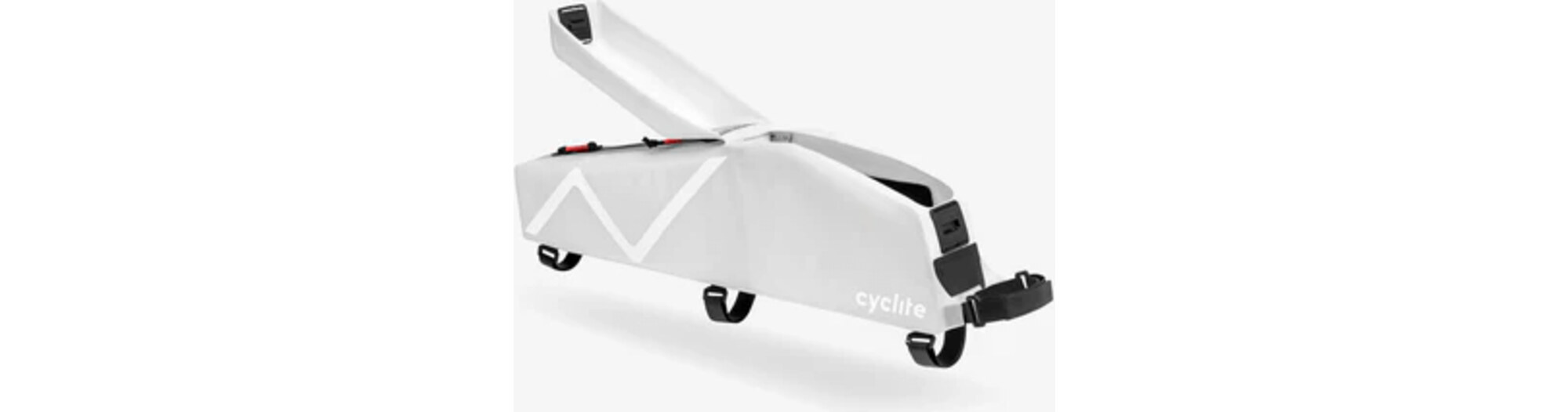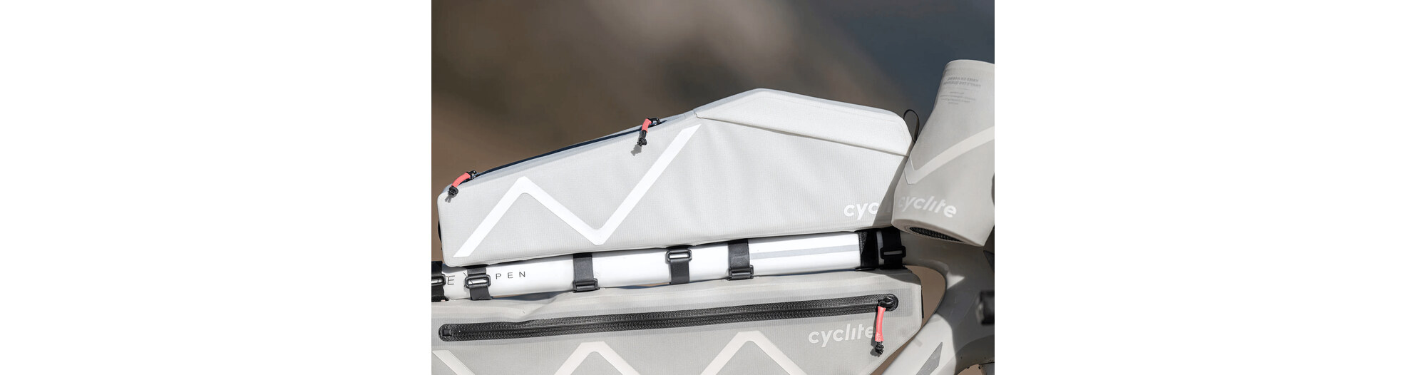 - Die TOP TUBE BAG LARGE erfordert einen Mindestabstand von 44 cm zwischen Gabelkopf und Sattelstütze. Sie ist kompatibel mit allen CYCLITE FRAME BAGS und den meisten Rahmentaschen anderer Hersteller, da die Position der Befestigungsgurte verändert werden kann.