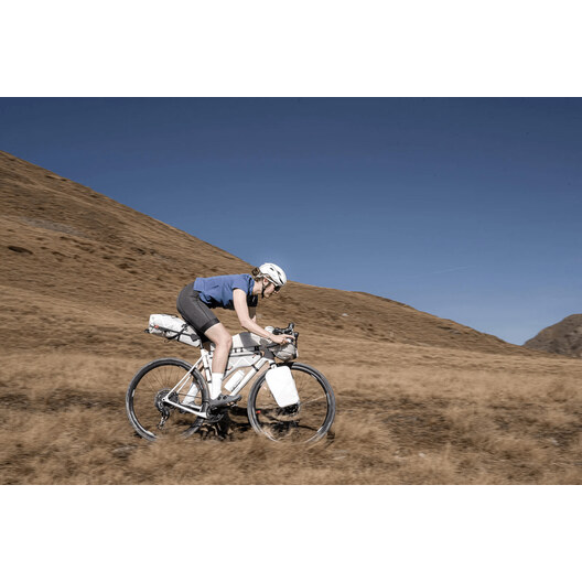TOP TUBE BAG LARGE / 02 ist die große Schwester der TOP TUBE BAG / 03. Mit einem Volumen von 2,2 Litern ist sie ideal für diejenigen, die lange fahren, kein Fahrrad haben, das die Installation einer Rahmentasche ermöglicht, oder einfach mehr Stauraum mit direktem Zugang beim Fahren wünschen. Die TOP TUBE BAG LARGE / 02 verfügt über eine große Öffnung im vorderen Fach, gesichert durch eine Klappe und einen Magnetverschluss. Das hintere Fach öffnet sich durch einen zentralen, wasserdichten Reißverschluss, perfekt, um die kleinen Accessoires zu verstauen, die man weniger oft benutzt. Ihre schmale Form hinten verhindert jeglichen Kontakt mit den Oberschenkeln. Auf der TOP TUBE BAG LARGE / 02 finden sich Funktionen der kleinen Version, wie die Kabeldurchführung. Trotz ihres großen Volumens ist sie eine ultraleichte Tasche, die bereits viele Radfahrer überzeugt hat, insbesondere unter den Ultra-Distanz-Fahrern. Im Vergleich zur vorherigen Version wurde das Design des vorderen Gurtes verbessert: Der Klettverschluss ist jetzt austauschbar und dehnbar, was sie kompatibel mit integrierten Cockpits macht. Die Tasche ist auch bolt-on ready und kann direkt auf das Oberrohr geschraubt werden, wenn es mit Gewindeeinsätzen ausgestattet ist.