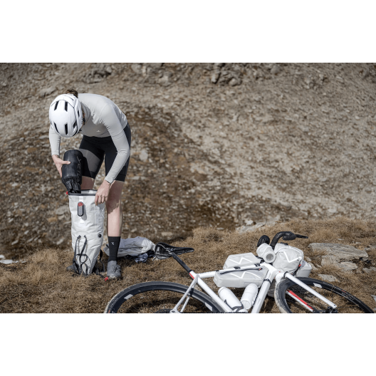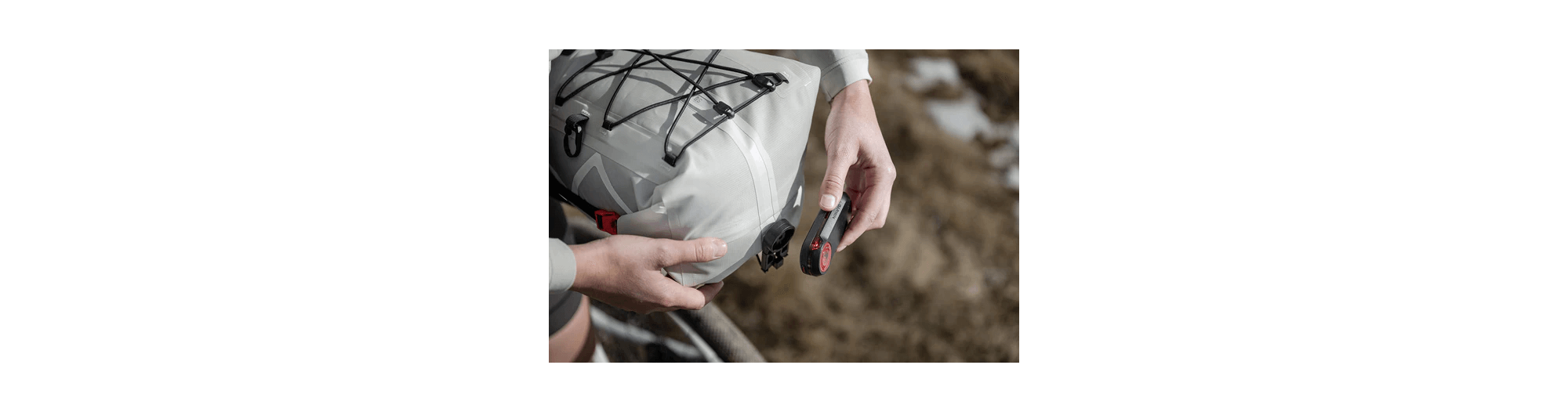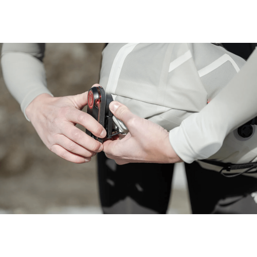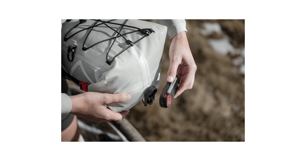 RADAR MOUNT / 02 ermöglicht die Befestigung eines Radar-Rücklichts (Garmin/Wahoo) an einer Satteltasche. Bei langen Fahrten mit Verkehr wird die Sicherheit, die das Radar bietet, von Bikepacking-Enthusiasten immer mehr geschätzt. Da der vorgesehene Platz an der Sattelstütze bereits von der Tasche eingenommen wird, fehlte bisher eine stabile und funktionale Befestigung, um das Radar an der Tasche zu montieren. Dieses leichte Zubehör mit einem Gewicht von 18 g lässt sich dank seines integrierten O-Rings an allen CYCLITE-Taschen (sowie an Taschen anderer Marken mit Befestigungsschlaufen) befestigen. Die Standard-Vierteldreh-Befestigung ermöglicht eine einfache Installation und Entfernung des Radars.