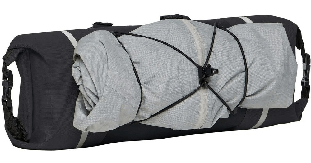 Alles, was Sie für ein spannendes Radreiseabenteuer benötigen! Die Trailfront Compact Lenkertasche ist leicht, wasserdicht durch Thermoverschweißung und hat ein Volumen von fünf Litern. Sie ist von beiden Seiten zugänglich und kann dank Rollverschlüssen wasserdicht komprimiert und verschlossen werden. Sie eignet sich perfekt für leichtes Gepäck oder einen kleinen Schlafsack. Die doppelten Befestigungen ermöglichen eine schnelle und sehr stabile Anbringung am Lenker. Zuerst werden zwei Klettbänder um den Lenker gelegt. Ein darüber liegendes Band wird in entgegengesetzter Richtung geführt und durch eine Schlaufe fixiert. Die mitgelieferten Abstandshalter ermöglichen die Anpassung an jede Lenkerstruktur. Die verstellbare Kordel hält alles, was schnell zur Hand sein muss. Die Trailfront Compact Lenkertasche lässt sich am besten mit einer Satteltasche kombinieren, um das kleine Wochenendgepäck ohne Gepäckträger vollständig am Fahrrad zu befestigen.