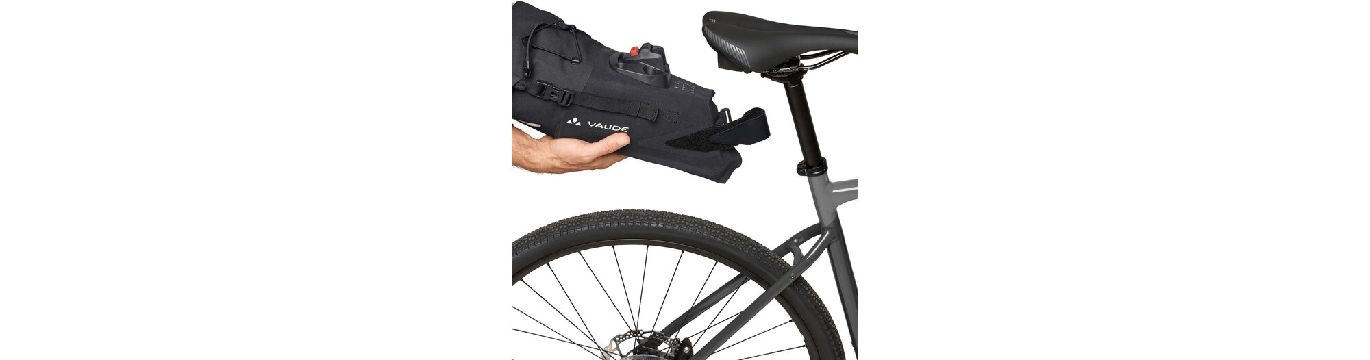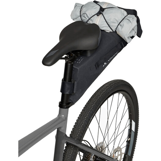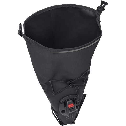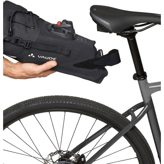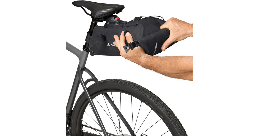 Die Satteltasche Trailsaddle Compact M, kompakt und durch Thermoschweißen wasserdicht, kann sechs Liter Material für das Bikepacking am Wochenende aufnehmen. Der Rollverschluss und das Luftablassventil ermöglichen eine optimale Kompression des Inhalts. Die KLICKfix®-Schnellbefestigung wird unter dem Sattel montiert und ermöglicht über den Adapter an der Satteltasche eine einfache Montage und ebenso schnelle Demontage mit nur einem Klick. Ein stabiler Klettverschluss fixiert die Tasche zusätzlich am Sattelrohr. Die Kordel oben ermöglicht es, die Windjacke oder Regenjacke schnell zu verstauen. Die Trailsaddle Compact M kann sehr gut mit der Lenkertasche Trailfront Compact kombiniert werden, um das kleine Wochenendgepäck komplett - ohne Gepäckträger - am Fahrrad zu befestigen.