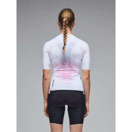 Das Damen-Trikot QLAB Gregarius Pro von Q36.5 ist aus einem speziellen Mesh-Gewebe gefertigt, das eine nahezu unmerkliche 3D-Struktur auf dem Oberkörper bildet und die Belüftung sowie den Feuchtigkeitstransport erheblich verbessert.