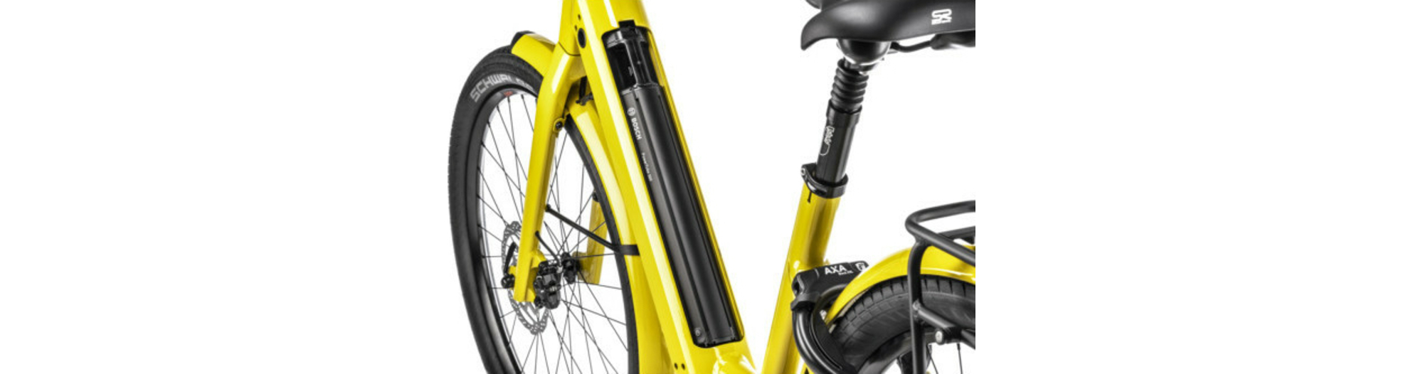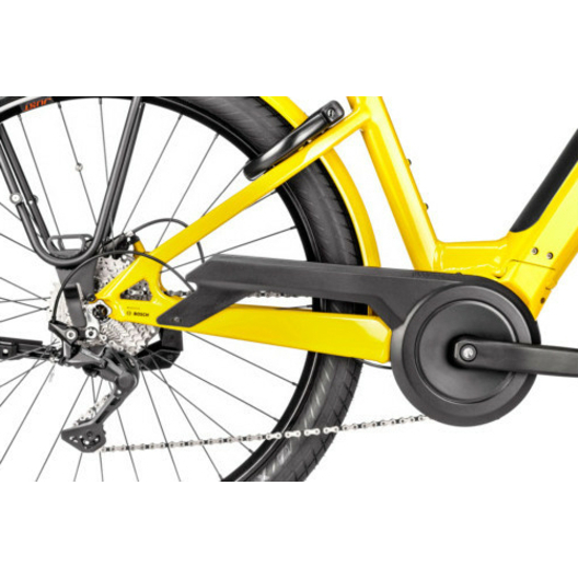 - Lundi 27 à enjambement bas, Aluminium 6061 T4-T6, tubes hydroformés et extrudés à triple cavités pour une rigidité optimale. Intégration exclusive pour batterie Bosch PowerTube (verticale), passage de gaines intégré