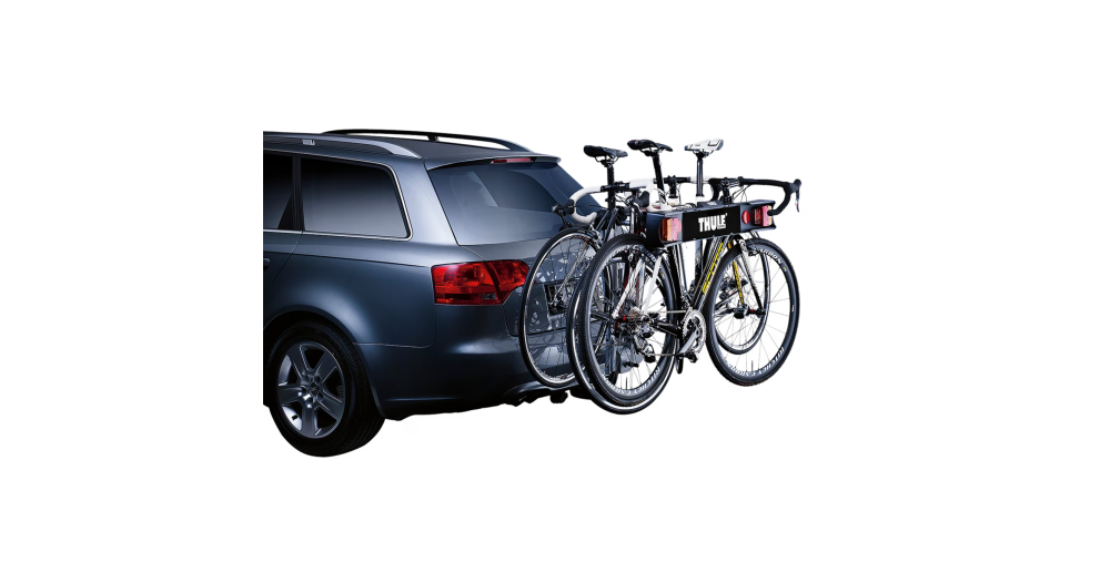Montage de l’adaptateur de plaque de signalisation électrique Thule 9761 sur les porte-vélos Thule HangOn 972/974 et Thule Xpress 970. Fixation à l’aide de sangles sur tous les autres porte-vélos