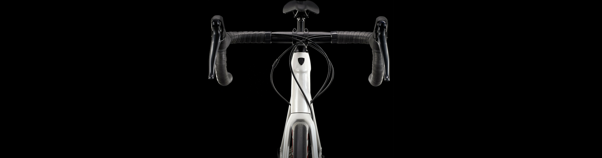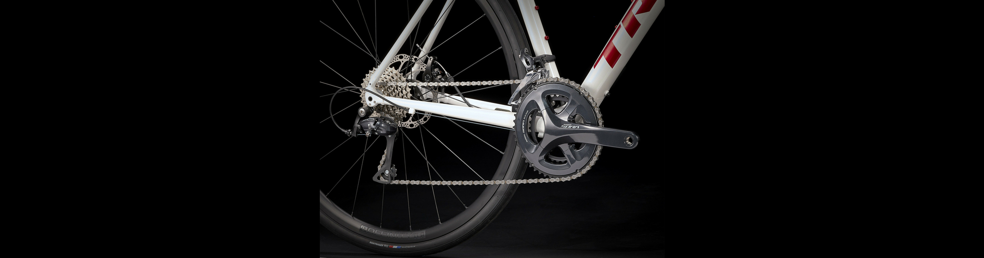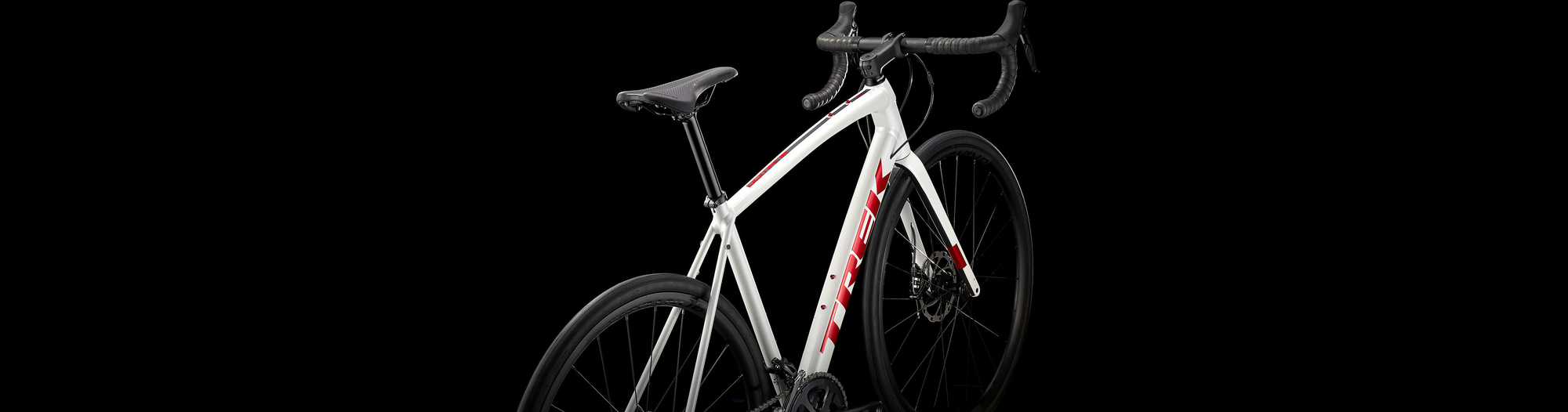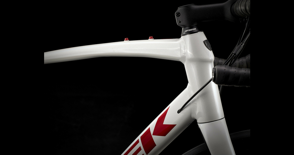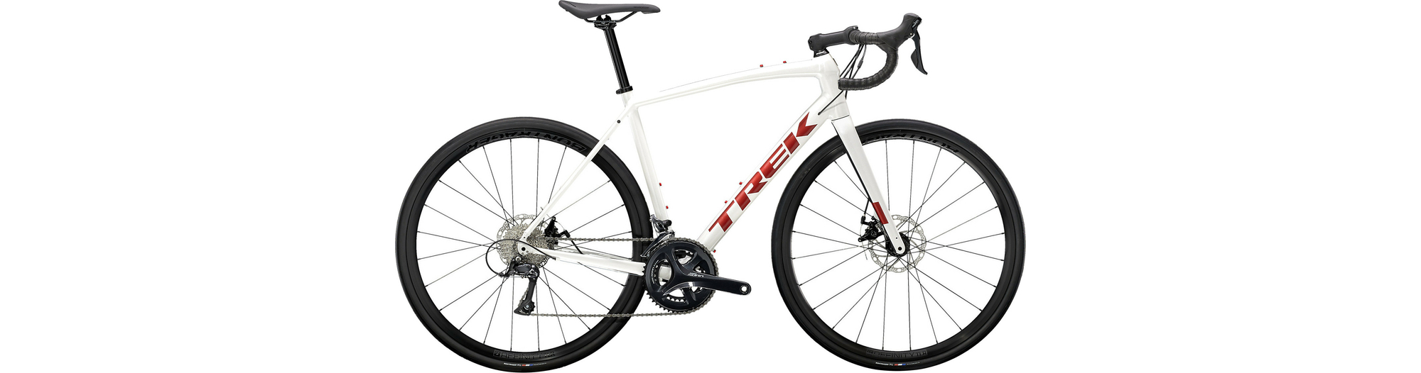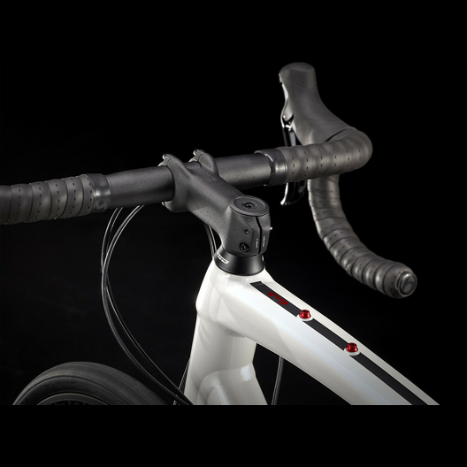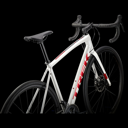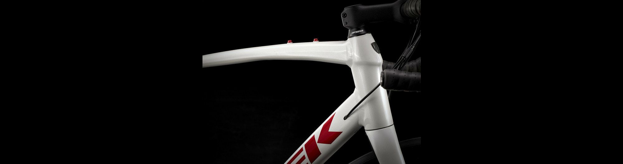 - Domane AL carbone, pivot conique alliage alu, acheminement interne des câbles de frein, fixations pour garde-boue, freins à disque à fixation Flat-Mount, axe traversant 12x100 mm