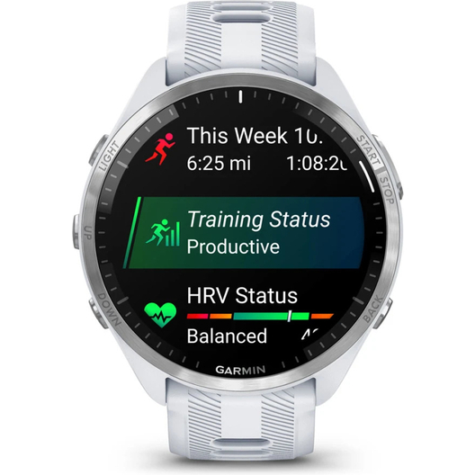 ET SI CHAQUE COURSE ÉTAIT UNE PERFORMANCE DIGNE D'UN PODIUM ? ET SI AVANT DE COMMENCER L'ENTRAÎNEMENT, VOUS SAVIEZ QUE VOUS ÊTES PRÊT À PERFORMER ? GRÂCE À LA FORERUNNER 965, LES STATISTIQUES ET LES DONNÉES S'AFFICHENT SUR UN ÉCRAN AMOLED ULTRA-LUMINEUX. ET BIENTÔT, VOUS BRILLEREZ COMME ELLE.