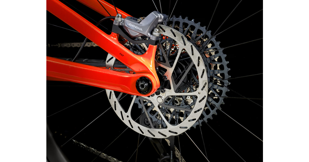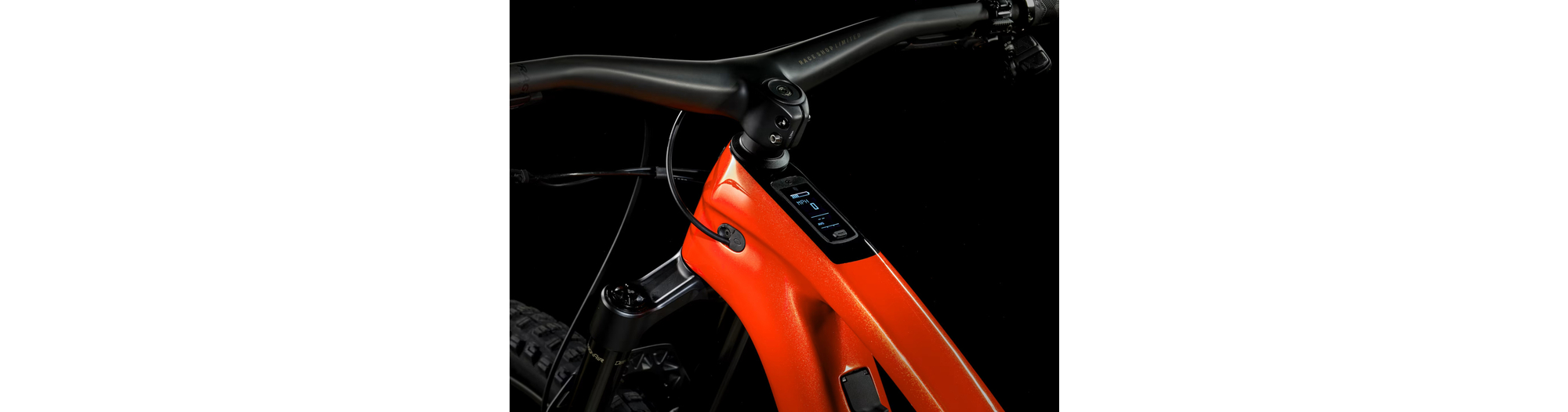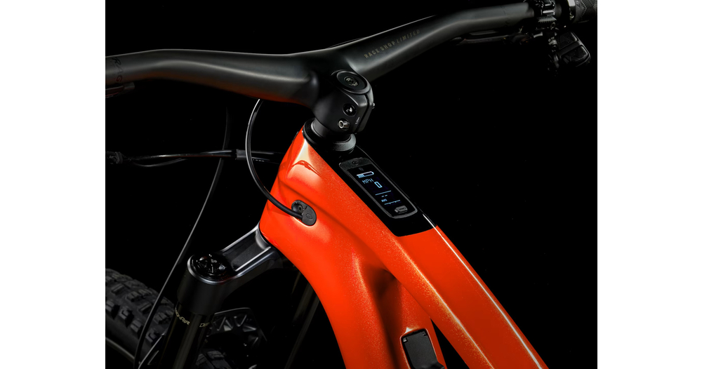 Un cadre OCLV Mountain Carbon avec une batterie de 360 Wh complètement intégrée et une transmission à démultiplicateur harmonique à anneau à broches, un port de charge intelligent, un affichage DEL intégré et une commande au guidon discrète. Sans oublier une fourche RockShox Lyrik Select+ de 150 mm de débattement avec ressort DebonAir et amortisseur Charger 2.1 RC et une suspension arrière RockShox Super Deluxe Select+ de 140 mm de débattement. Et la cerise sur le gâteau ? La transmission GX AXS de SRAM qui garantit des changements de vitesse nets, même sous la contrainte.