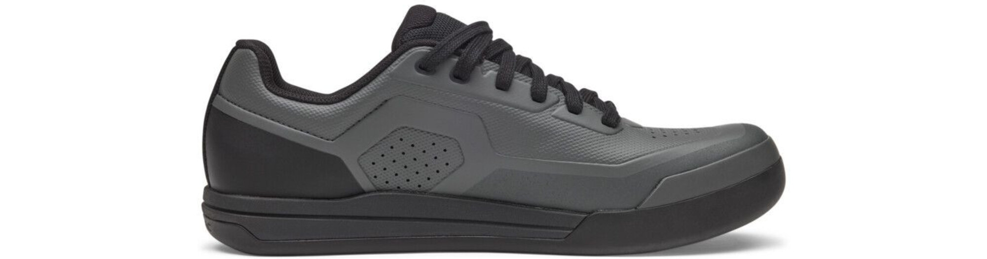 Attention : nouveau venu sur la piste. Les toutes nouvelles chaussures Union pour pédales plates sont prêtes à faire passer vos aventures en VTT à un niveau encore plus élevé de "fun !" La version à pédale plate de l'Union colle avec confiance à vos pédales et, si vous arrivez dans un virage avec trop de vitesse, elle vous permet de mettre un pied dehors et de stabiliser le vélo. Construit avec des caractéristiques robustes, y compris une conception d'embout moulé pour protéger contre les impacts de pierres, le modèle Fox Union supporte sans problème les rigueurs des sentiers. Légère et précise, la semelle intermédiaire en EVA surbaissée et réglée sur mesure augmente l'adhérence et la sensation de la pédale, ce qui vous donne plus de confort pendant que vous déchirez. La puissance de la pédale est optimisée grâce à la plaque de rigidification interne moulée, mais la rigidité ne se fait pas au détriment du confort en dehors du vélo. Si vous devez faire de la randonnée à vélo autour d'un arbre abattu, tout va bien. La semelle est conçue à l'aide du composé de caoutchouc Ultratac™, avec le motif de bande de roulement conçu pour offrir la meilleure adhérence et la meilleure durabilité de sa catégorie. Polyvalentes et d'un style discret, les Union Shoes sont nées pour déchirer, en passant d'un single track à vos bars d'après-course avec facilité