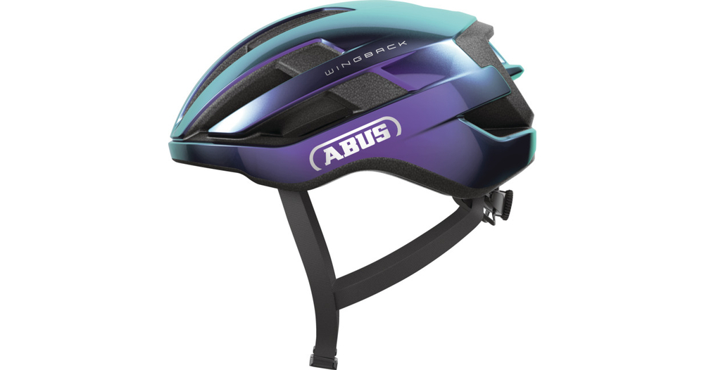 Le casque WingBack d’ABUS adopte un design minimaliste et moderne. Il se distingue par des canaux de ventilation profonds, des entretoises fines et une arête de décollement à l’arrière, tout en intégrant des technologies empruntées aux casques de performance. Il est conçu pour être simple à utiliser : il suffit de le mettre et partir à vélo. Le système Zoom Ace permet d’ajuster le casque rapidement à la taille de la tête. Il y a aussi une compatibilité pour les coiffures longues (queue de cheval, chignon) grâce à une ouverture adaptée. Les sangles FlowStraps sont conçues pour être sans flottement et ne nécessitent pas de répartiteur. La construction utilise le procédé In-Mould : la mousse EPS (polystyrène expansé) est injectée directement dans la coque en polycarbonate (PC), assurant une liaison durable entre les deux matériaux.
