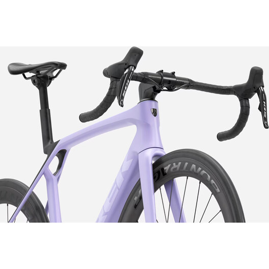 Le Madone SL 6 8e gén. est un vélo aérodynamique léger qui donne accès à une technologie de compétition à prix avantageux grâce à un composé en carbone OCLV 500 moins coûteux que celui du SLR. Un groupe électronique Shimano 105 Di2 permet de réaliser des changements de vitesse électronique à la vitesse de l’éclair. L’utilisation d’un cintre en alliage permet de maintenir le prix à un niveau abordable. Il est en outre équipé de roues en carbone, pour une légèreté exceptionnelle.