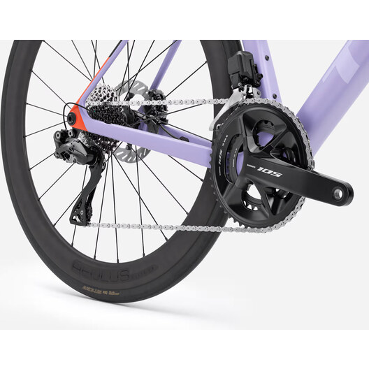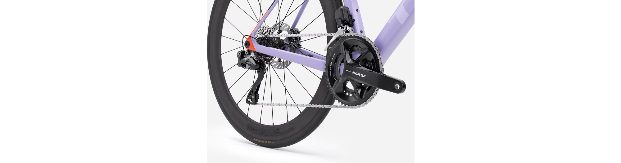 - OCLV Carbon série 500, forme de tube Full System Foil, tube de selle IsoFlow, jeu de direction RCS, acheminement électronique ou mécanique, garde-chaîne aérodynamique amovible, boitier de pédalier T47, freins à disque à fixation Flat Mount, patte de dérailleur universelle (UDH), axe traversant 142 x 12 mm