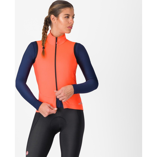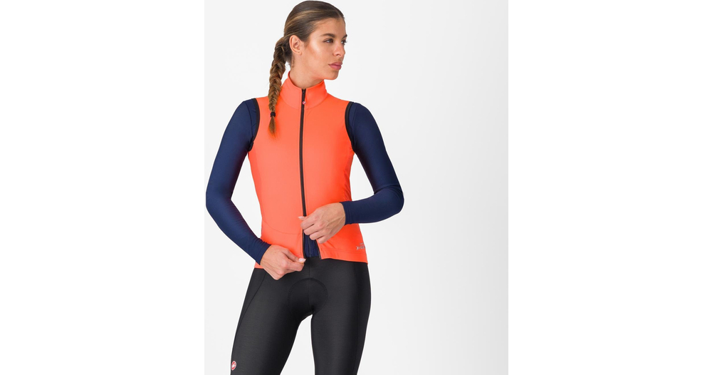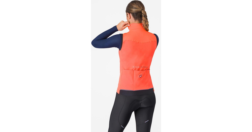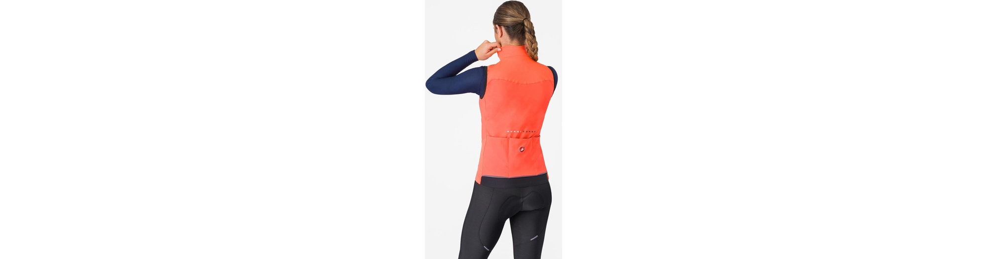 Ce modèle est le gilet idéal lorsque vous avez besoin de chaleur tout au long de votre sortie. Il s’agit de notre gilet le plus chaud, mais grâce à son exceptionnelle respirabilité, il vous permet d’affronter une large plage de températures. La technologie du tissu Ristretto Castelli est ce qui le rend si polyvalent. Grâce à notre solution technique de perméabilité à l’air, nous créons des tissus qui sont principalement coupe-vent mais qui laissent passer une toute petite quantité d’air à travers le tissu, afin d’évacuer votre transpiration et de vous garder plus au sec. Le devant est réalisé en tissu Ristretto d’épaisseur moyenne et le dos est en tissu tissé extensible, pour encore plus de respirabilité. Vous restez plus au sec et vous avez ainsi plus chaud avec une tenue moins encombrante. Vous pouvez ajuster la ventilation grâce à la fermeture éclair à double sens YKK® Vislon®. Trois poches spacieuses à l’arrière vous permettent d’emmener ce dont vous avez besoin. Le col est suffisamment haut pour que vous laissiez votre cache-cou à la maison.