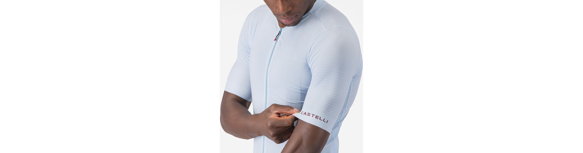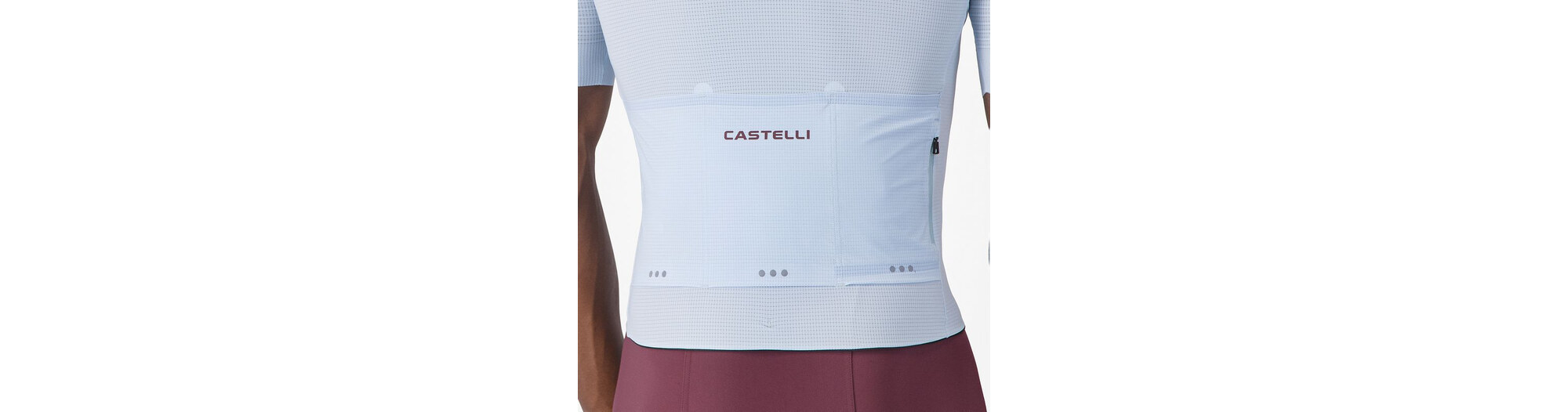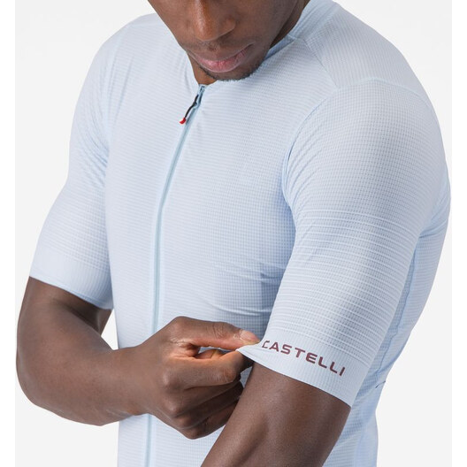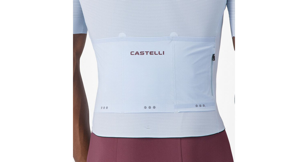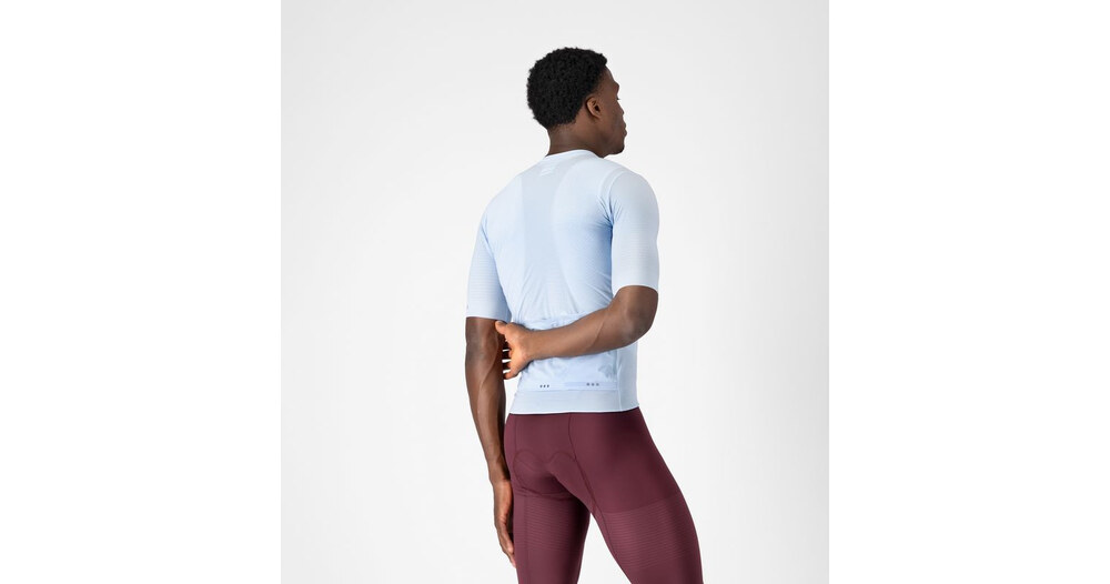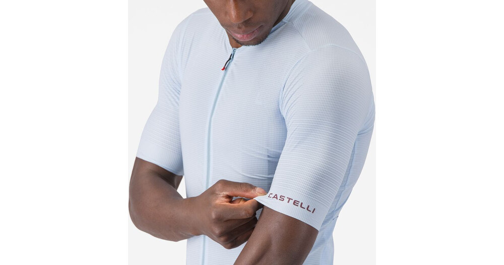 - Panneau en filet tissé côtelé extensible et recyclé au niveau des épaules, pour vous garantir fraîcheur et confort tout en ajoutant un aérodynamisme de classe internationale