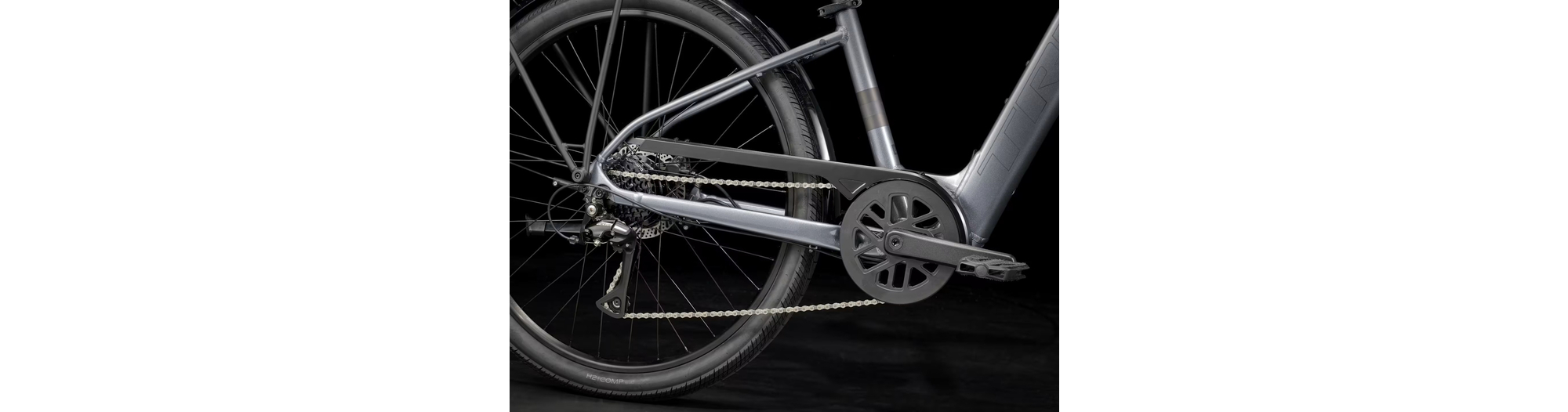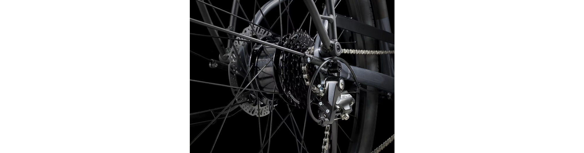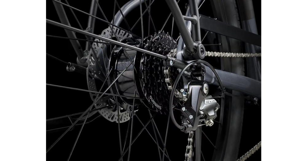- Bontrager Connection, 32 rayons inox noirs, moyeu avant Formula DC-20 (100x5 mm) et moteur arrière Hyena 250 W/40 Nm, blocage rapide ThruSkew, valve Presta.